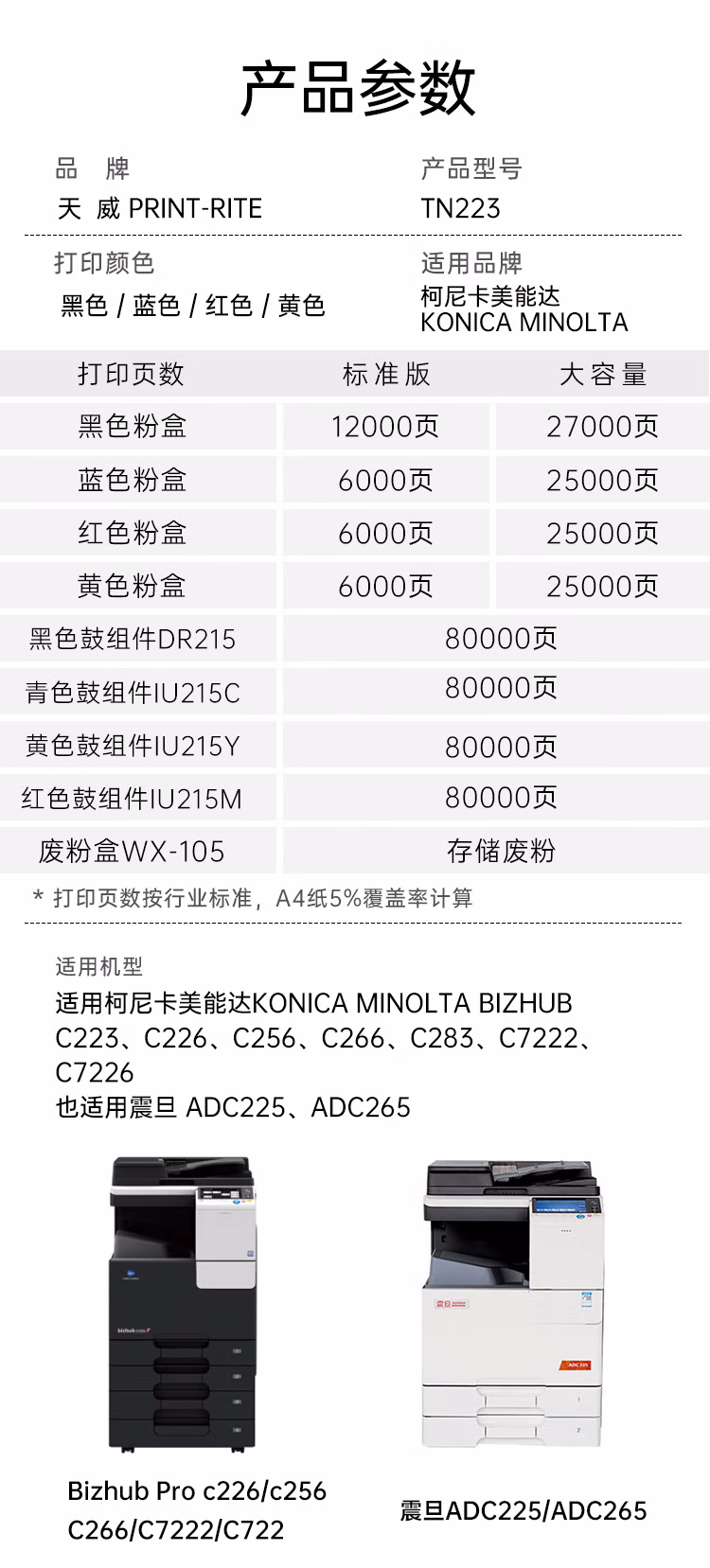 > 威 适用柯尼卡美能达c226粉盒 TN223墨粉盒 Bizhub C256碳粉C7222 C7226 TN224复印机墨盒 四色大容量套装