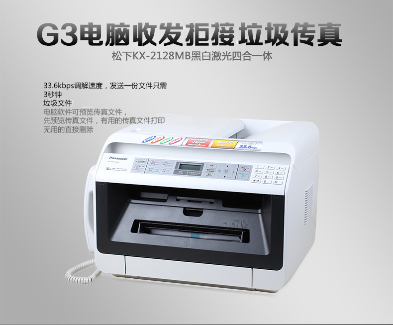 > 松下电器(panasonic) KX-MB2128CN 黑白激光打印传真一体机 双面打印 KX-FAC477CN原装墨粉盒3支(不含机器)