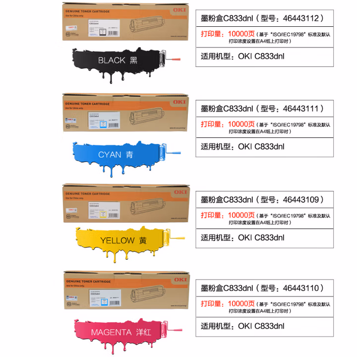 > OKI C833dnl 洋红色墨粉粉仓碳粉粉盒 原装打印机耗材10000页货号46443110