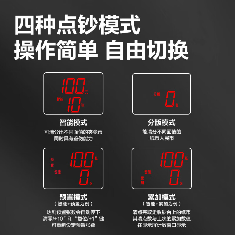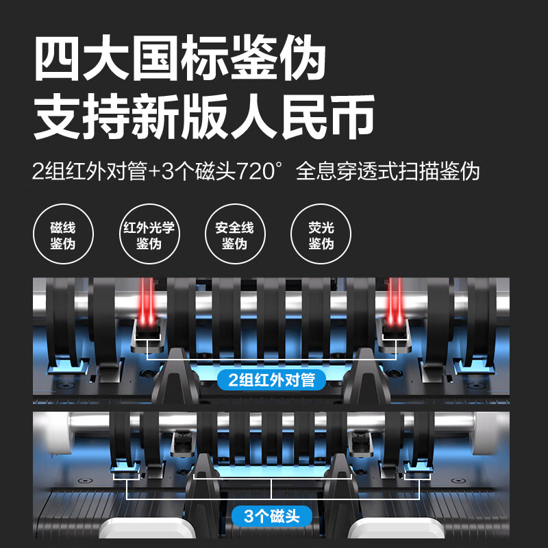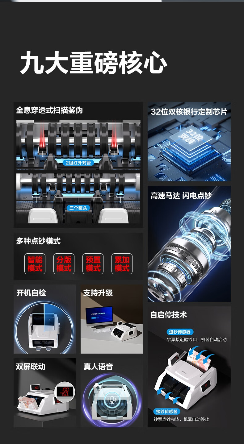 > 得力点钞机 验钞点钞机小型 验钞支持新版人民币 商用家用专用收银支付点钞数钱机 双屏国标C类3909S