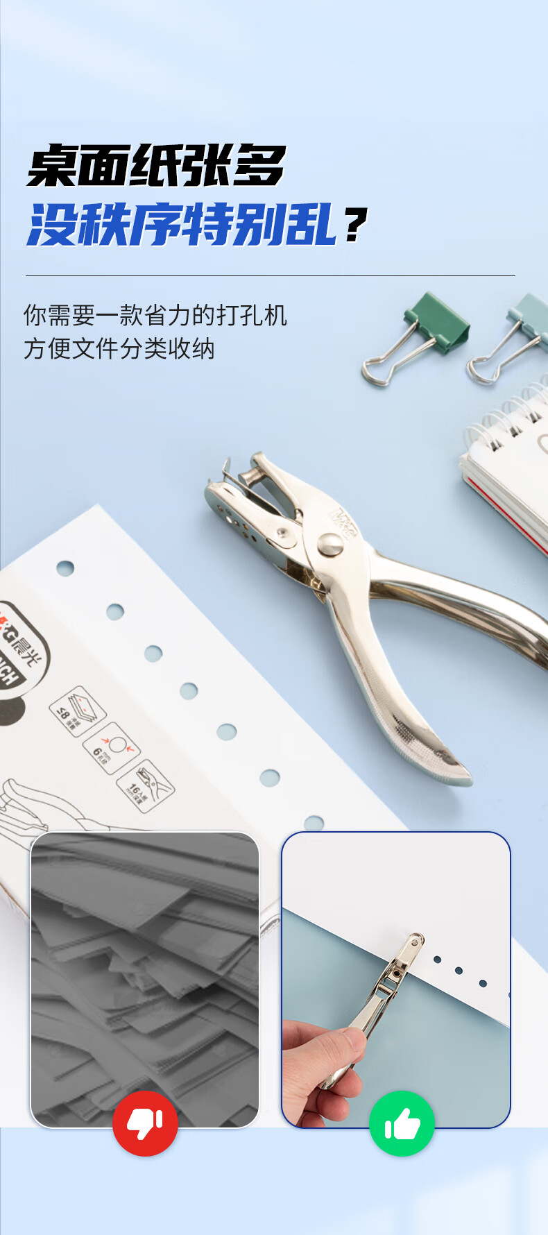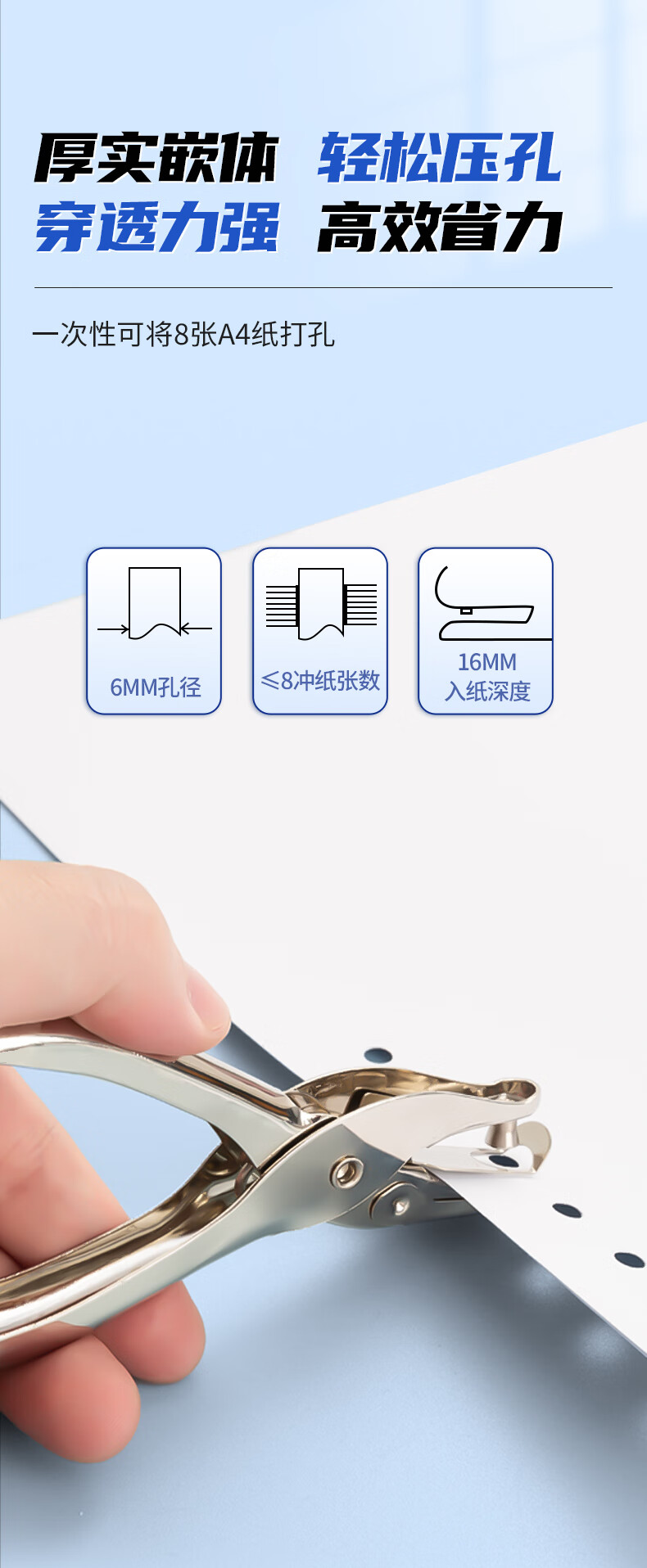 > 晨光(M&G)文具φ6mm手握式不锈钢金属打孔器 便携式办公单孔打孔机 银色单个装ABS916H4