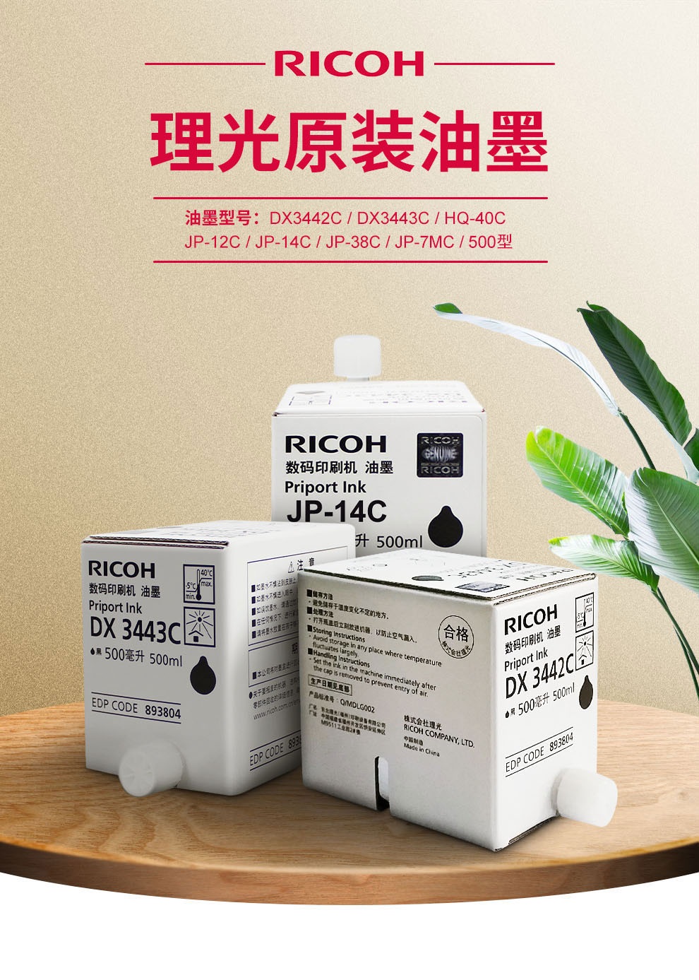 理光(Ricoh)JP12C 油墨 适用于JT3800(500cc/瓶*5支)