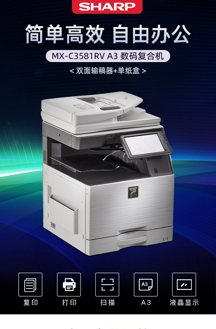 > 夏普(SHARP)MX-C3581RV 复印机 A3彩色数码复合机 (含双面输稿器 单层纸盒) 免费上门安装售后