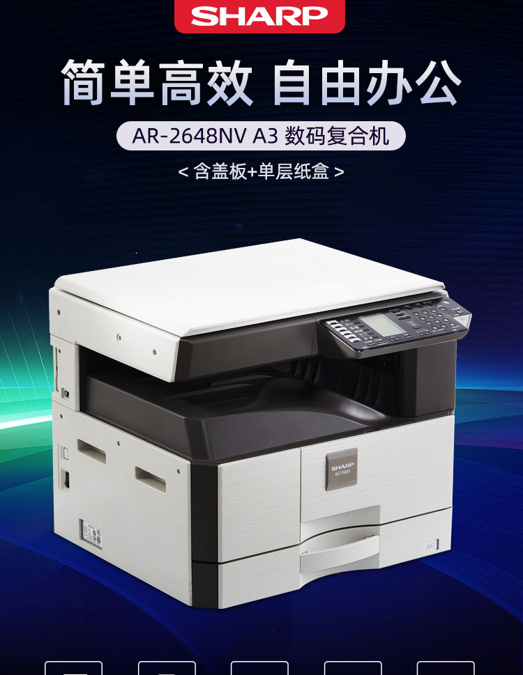 > 夏普(SHARP)AR-2648NV 复印机 A3黑白数码办公复合机(含盖板 单层纸盒) 免费上门安装售后