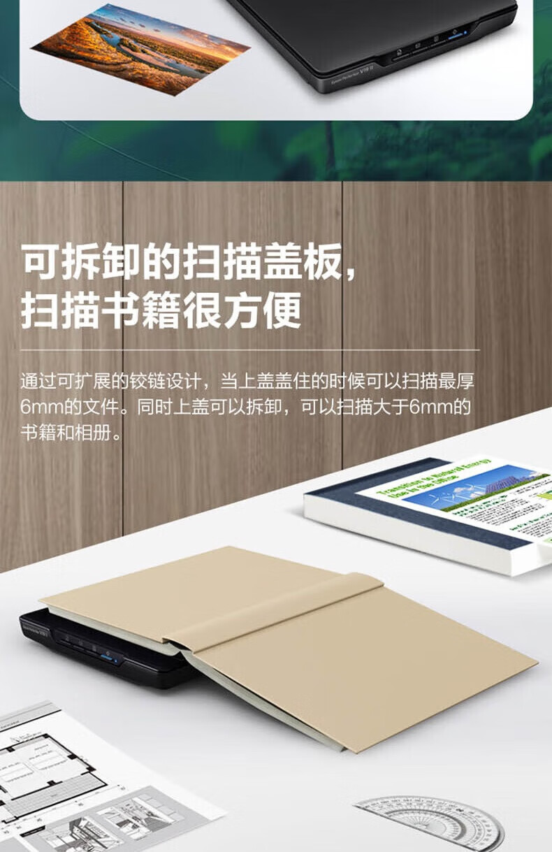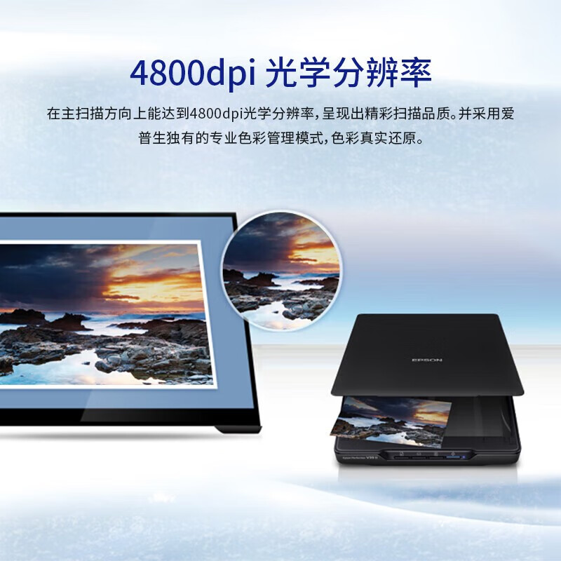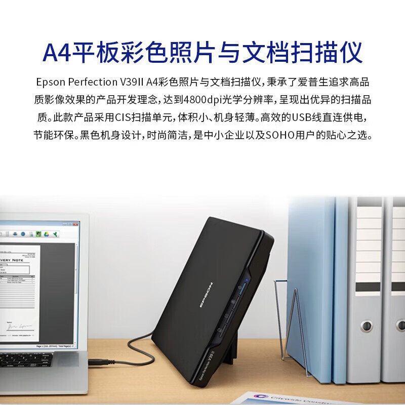 爱普生(EPSON)平板式A4彩色高清照片影像实物扫描仪 V39II(A4+USB供电+A3拼接扫描)