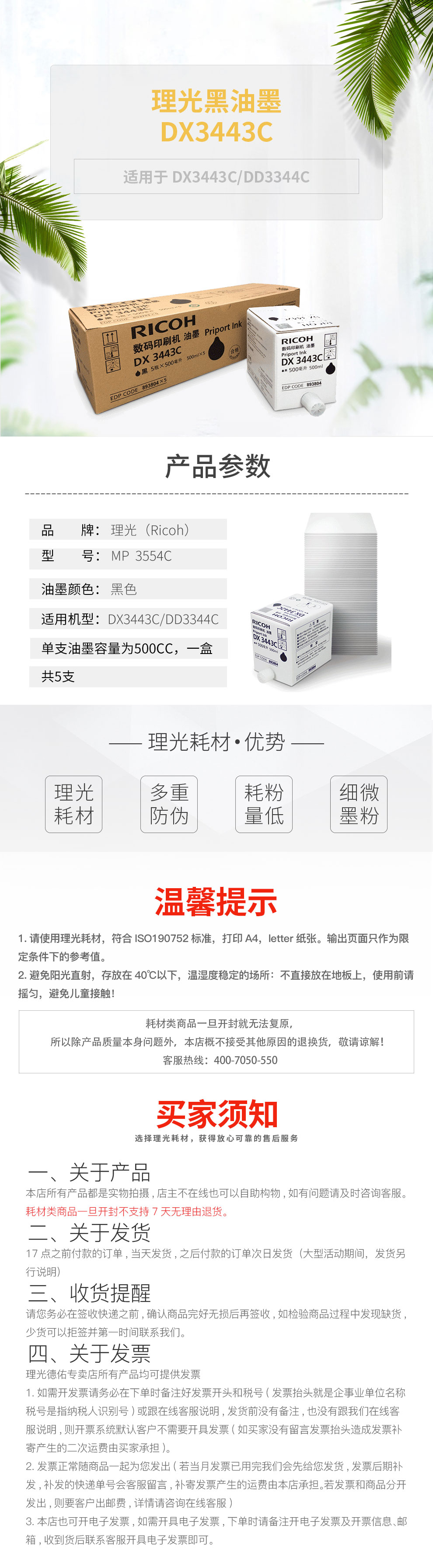 理光(Ricoh)DX3443C(500cc瓶5支)黑油墨适用于DX3443CDD3344C