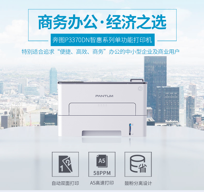 > 奔图(PANTUM) P3370DN黑白激光打印机 自动双面 USB 有线网络打印 家用办公打印机 P3370DN