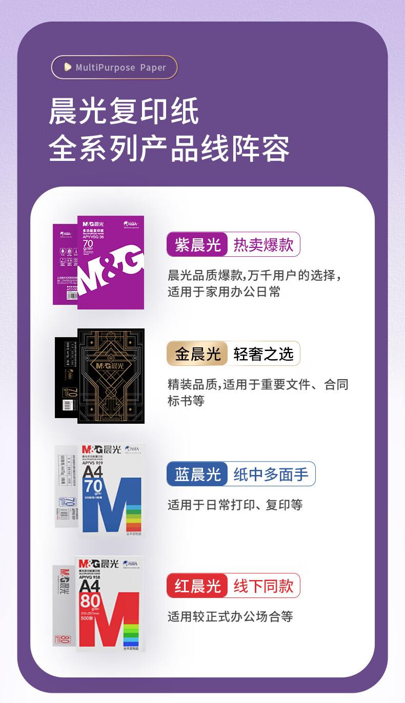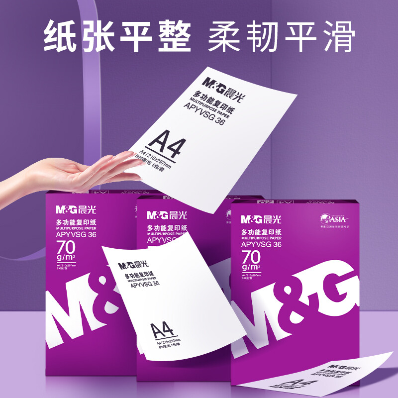 > 晨光(M&G) 紫晨光 A3 70g 多功能双面打印纸 热销款复印纸 500张/包 5包装(整箱2500张) APYVR59J