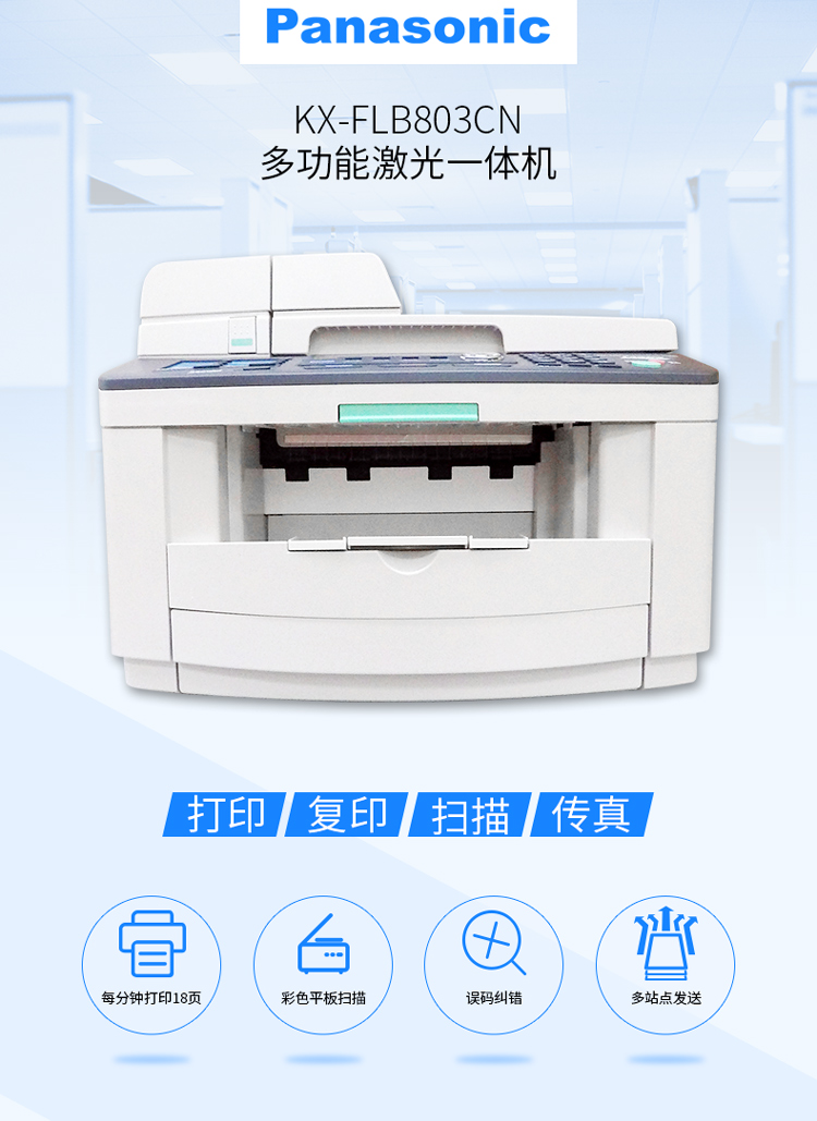 松下(Panasonic)KX-FLB803CN打印/复印/扫描/传真黑白激光多功能一体机英文显示屏 KX-FLB803CN机器 粉盒3个 硒鼓1支
