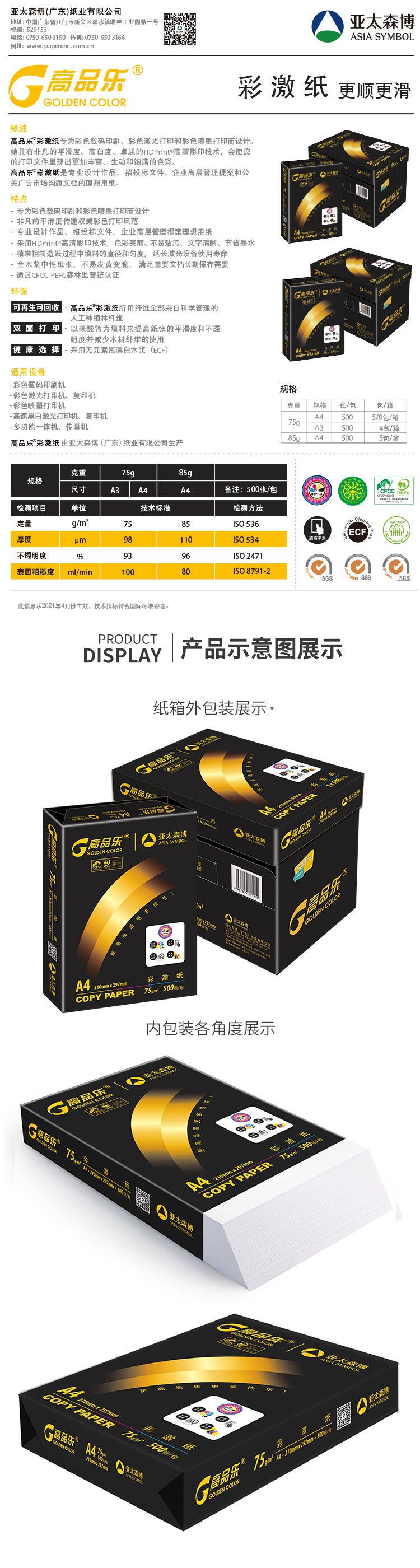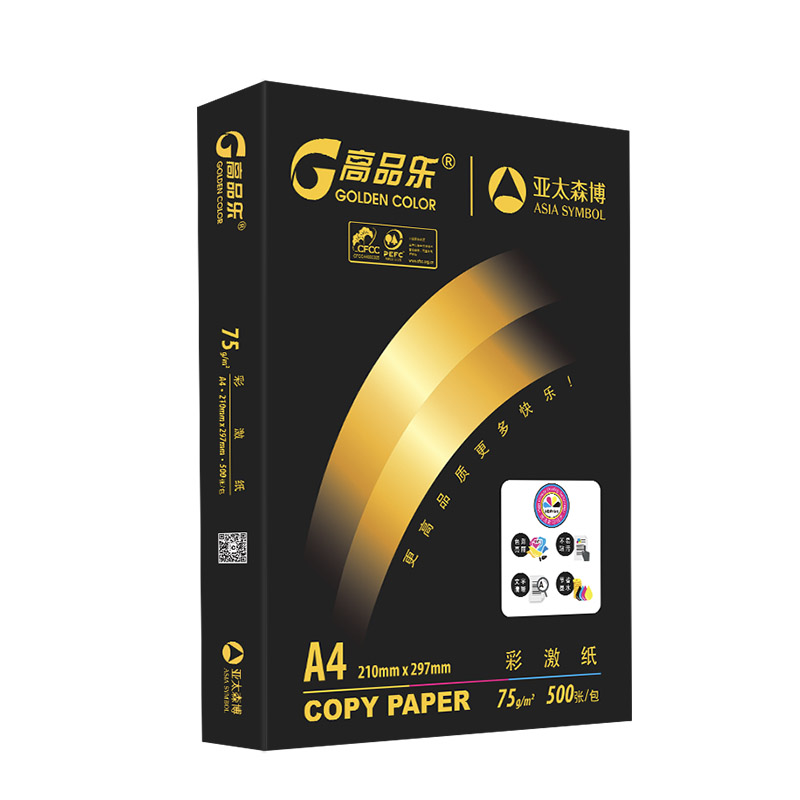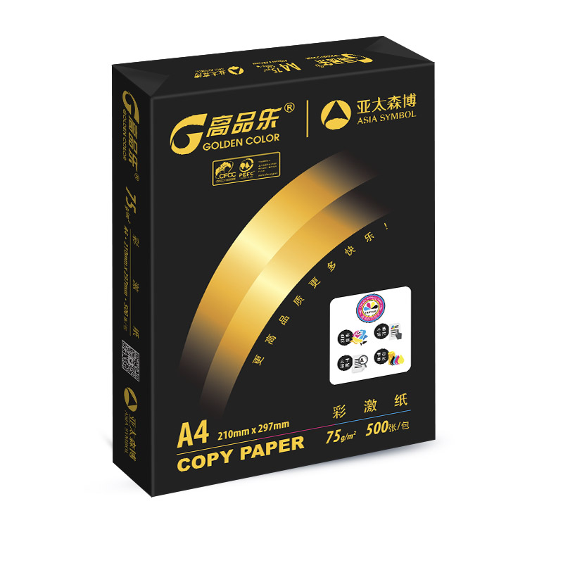 > 亚太森博 高品乐彩激纸复印纸 A4 75g 5包/箱 500张/包 M