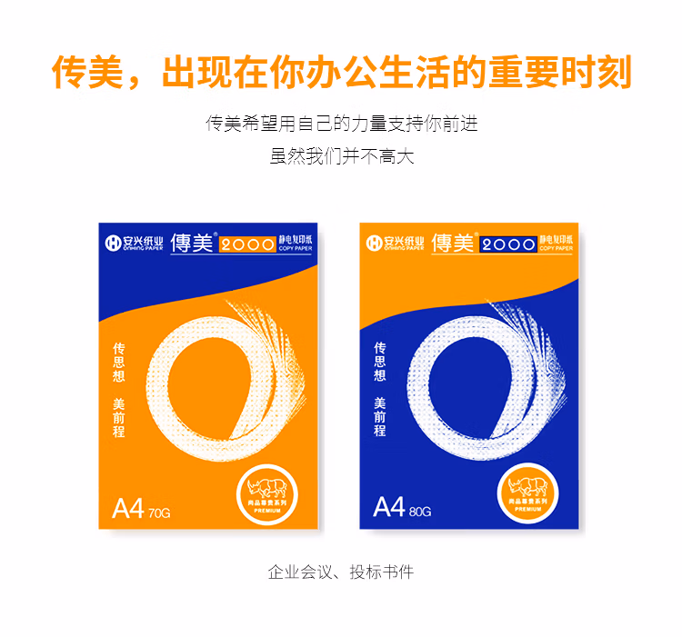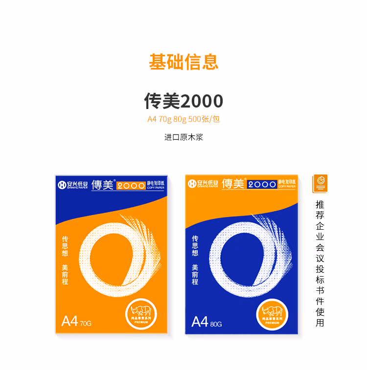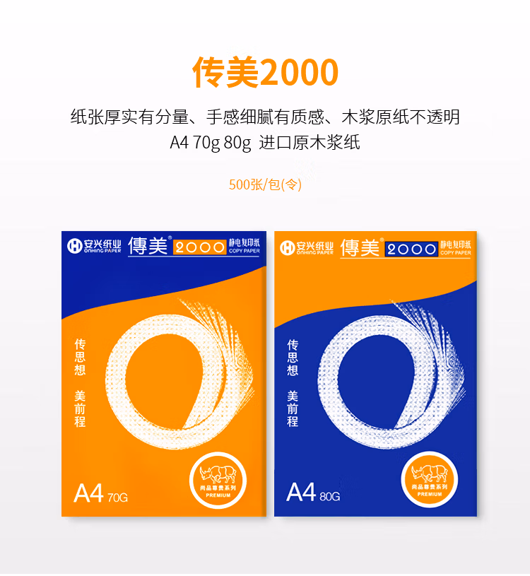 > 安兴 传美2000 80g B4 打印纸 高档复印纸 加厚白纸 合同标书多功能办公纸 500张/包 5包/箱(2500张)