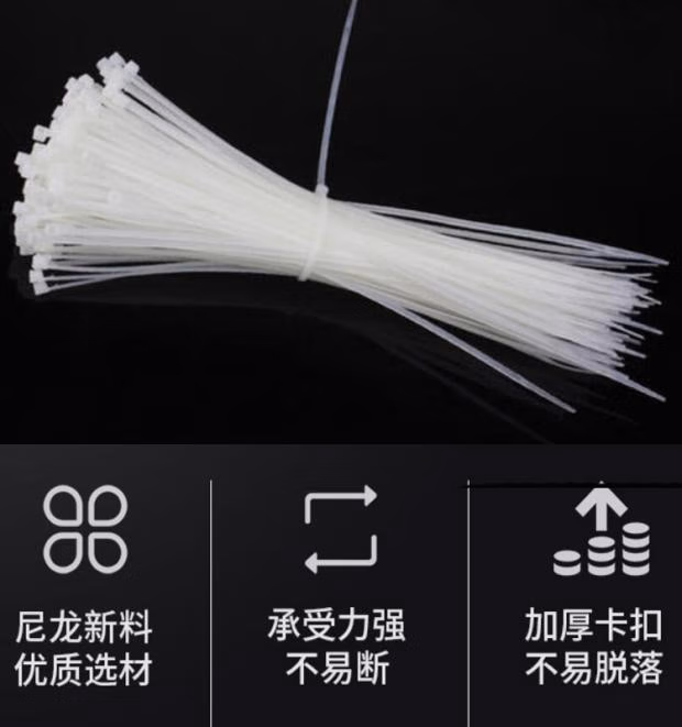 > 始骏扎带卡扣白黑尼龙扎带大号累死狗捆绑榴莲固定笼子自锁式4*200 4*200 宽3.6MM 100条 经济款