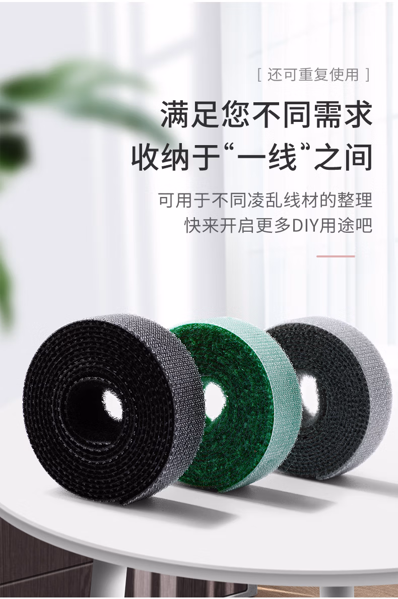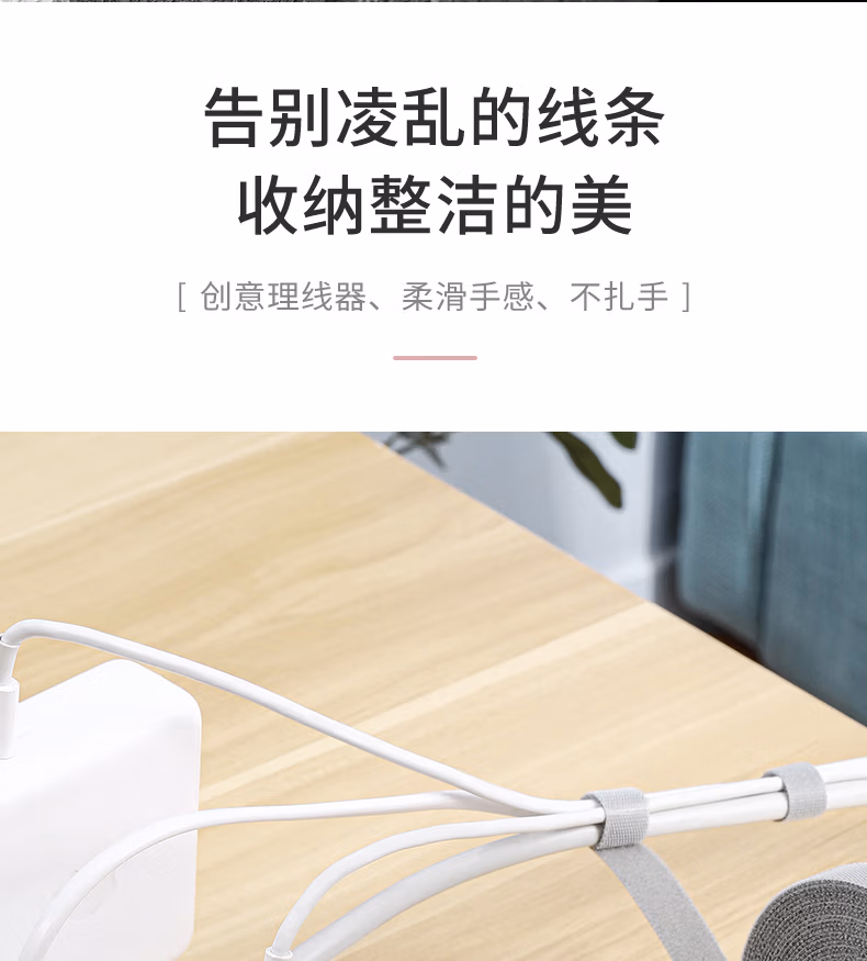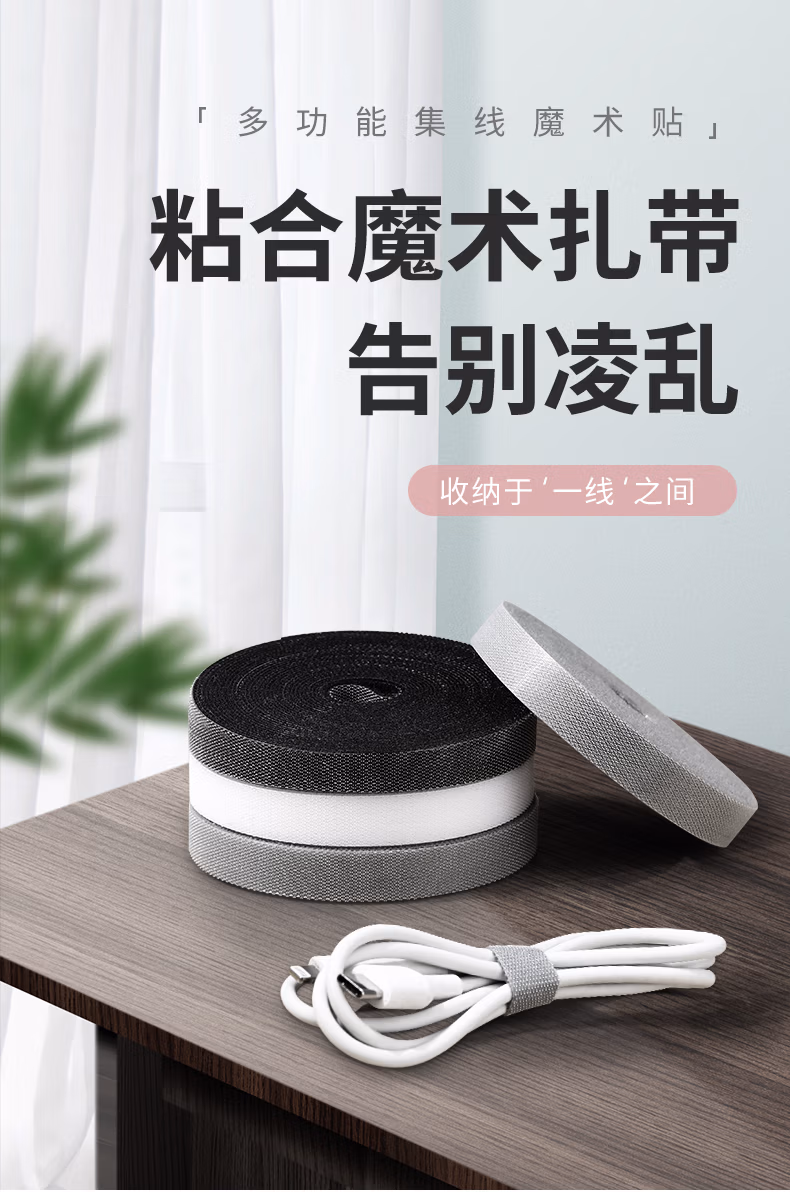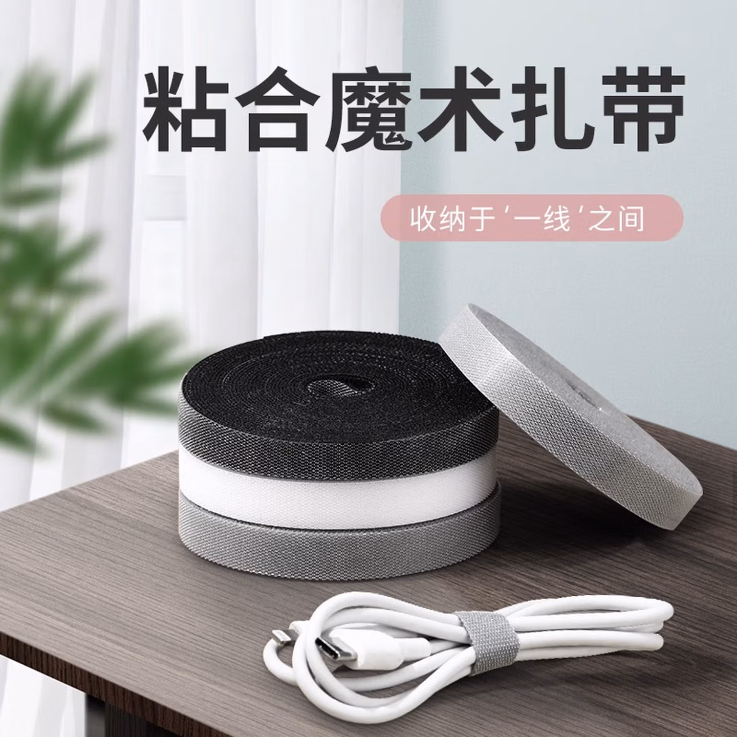 > 安达通 理线带 整理神器魔术贴扎带数据线收纳绑捆线带缠绕束线线 白色 5米/1卷