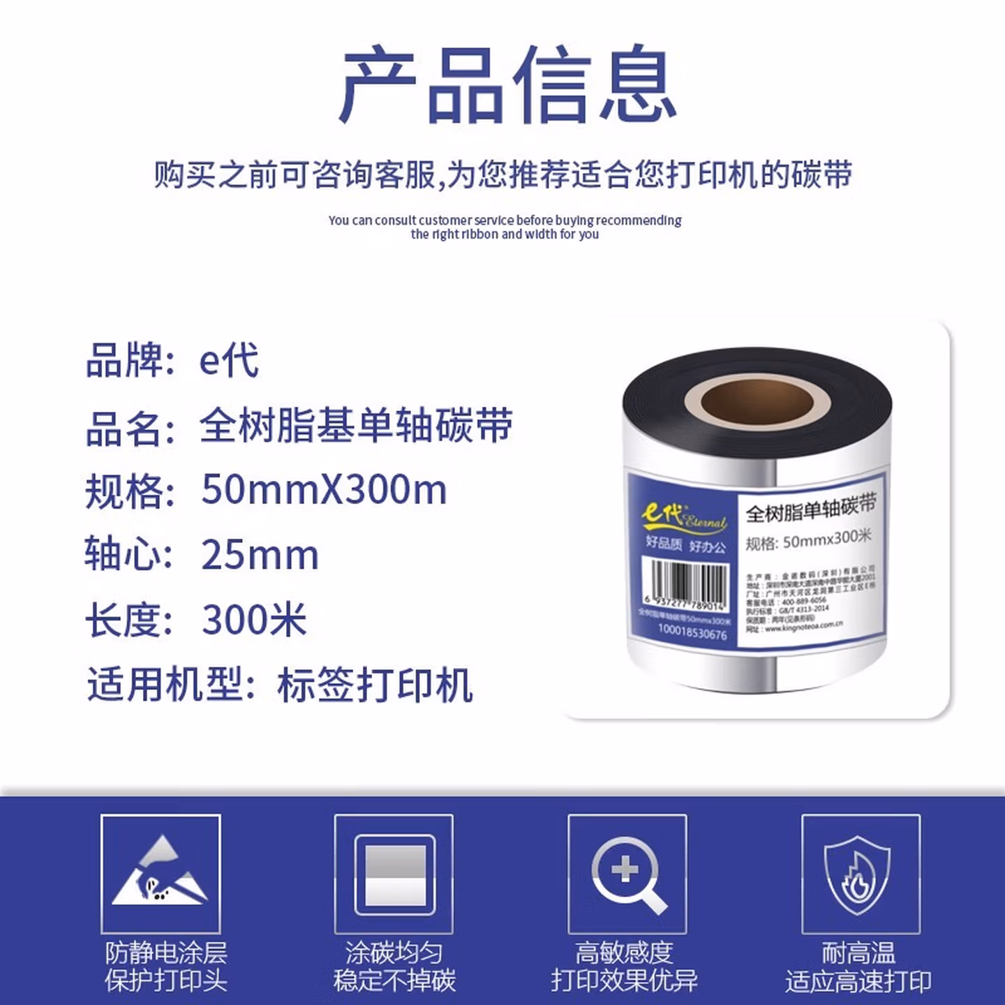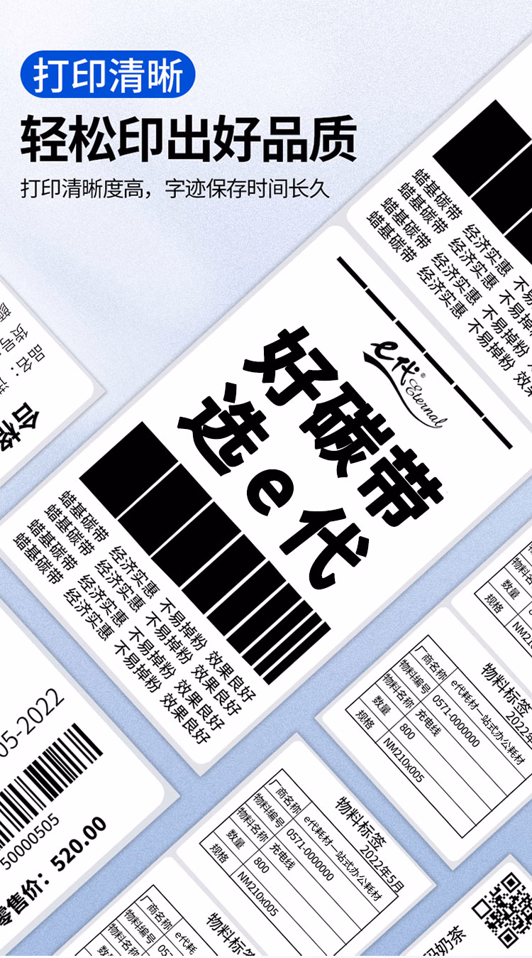 > e代树脂基碳带110mm*90m双轴2支装 适用斑马gk888t/zd888t条码打印机热转印标签机碳带卷