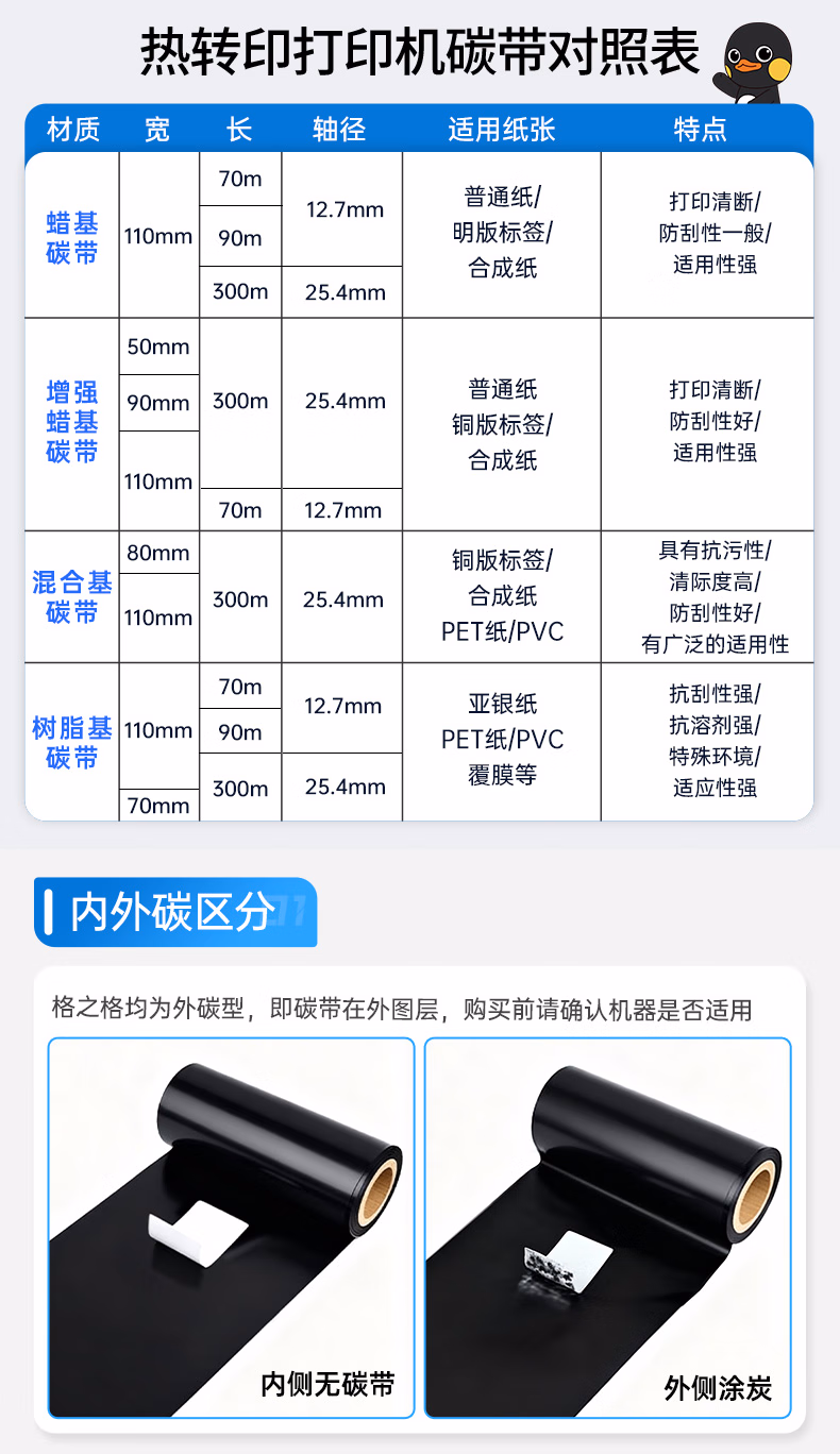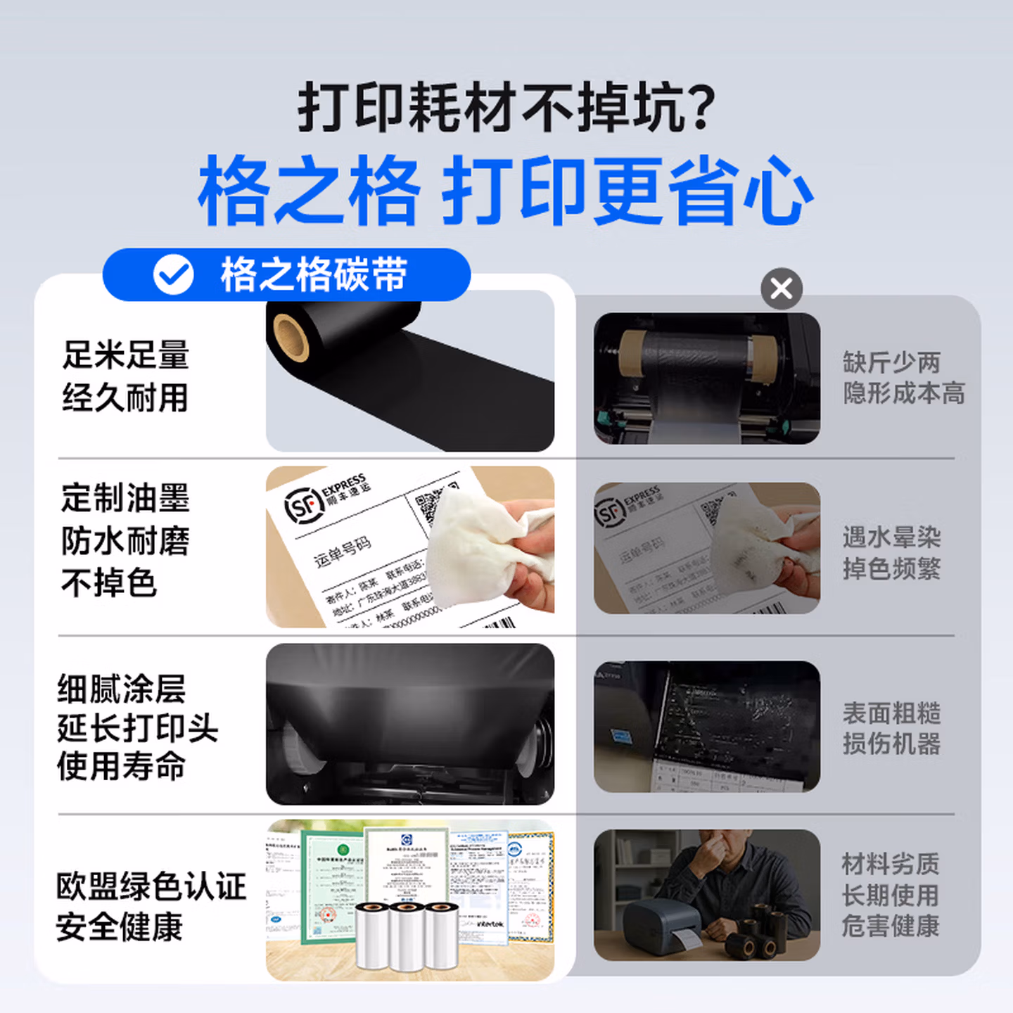 > 格之格碳带 混合基碳带110mm*300m 碳带卷 适用tsc台半ttp-244pro条码机标签机TE34热转印打印机色带