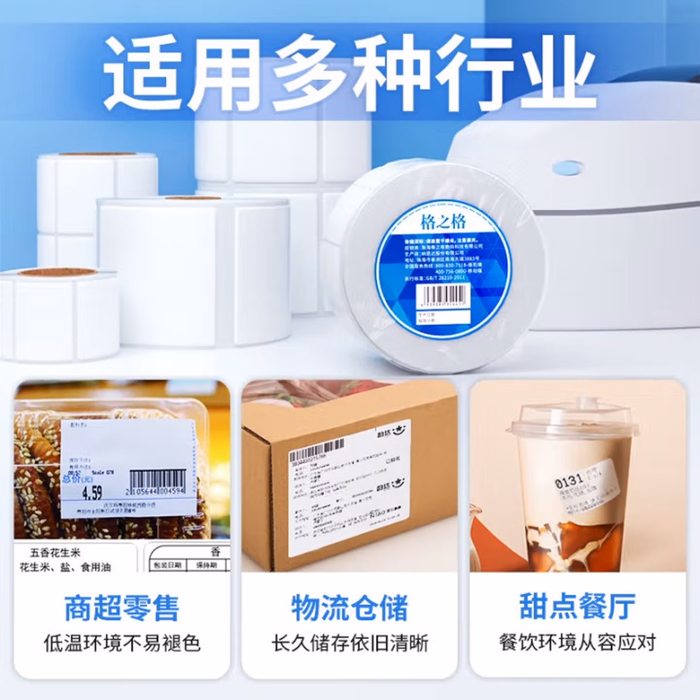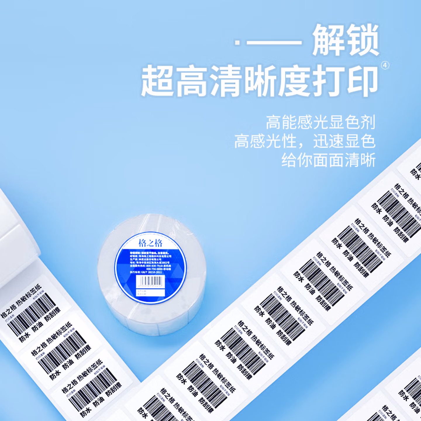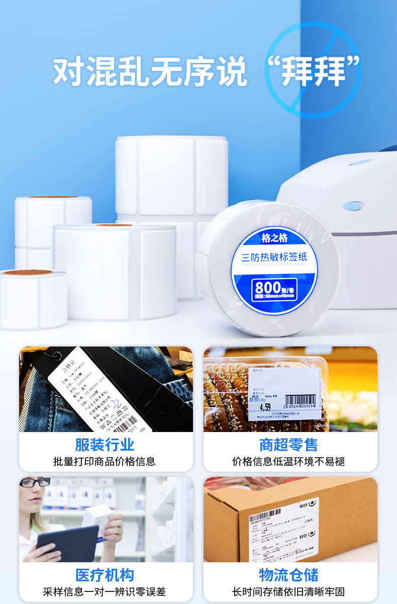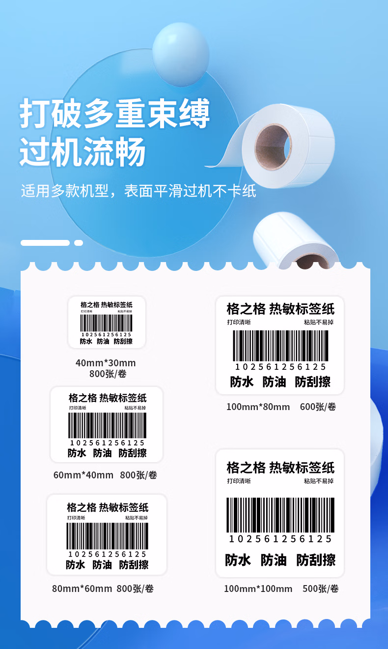 > 格之格【可定制】40*30*800张*1箱(60卷) 三防热敏标签打印纸食品奶茶不干胶打印纸 电子秤条码标签贴纸