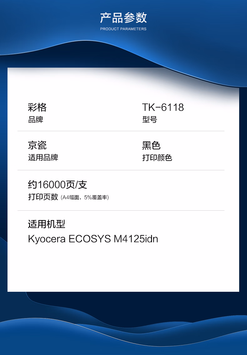 > 彩格TK-6118粉盒 适用京瓷Kyocera ECOSYS M4125idn数码复合机墨盒 复印机墨粉盒 打印机碳粉盒