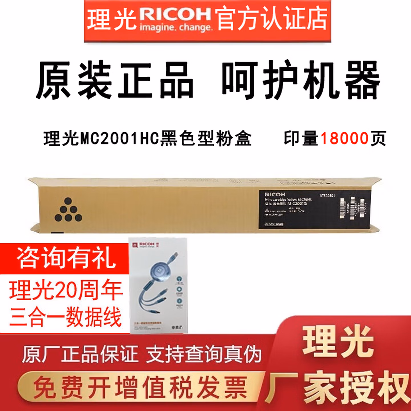 > 理光MC2001LC/H型原装粉盒碳粉墨盒硒鼓适用理光MC2001/MC2000/MC2000ew M C2001H四色大容量一套