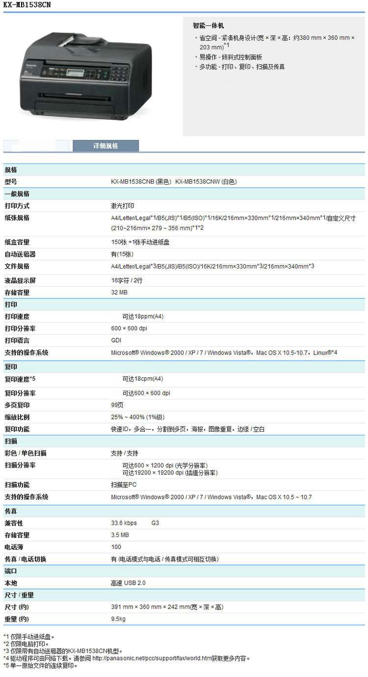 > 松下(Panasonic) 松下多功能一体机打印复印机传真扫描MB1663/1665CN MB1663CNW 白色4in1