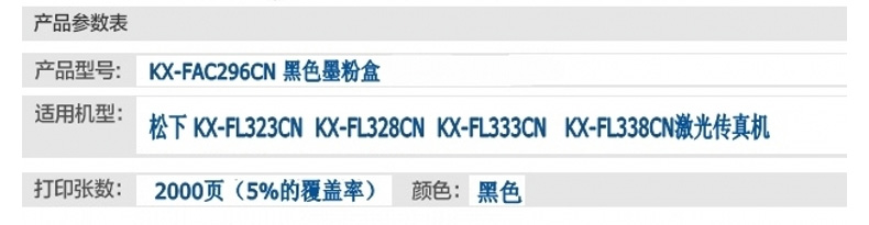 > 松下Panasonic KX-FAC296CN 黑色墨盒粉盒(适用FL323 328 338) 黑色