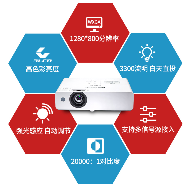 > 松下(Panasonic)PT-WW3101 投影仪办公 培训教学会议 投影机家用(高清宽屏 3300流明 2万小时灯源)