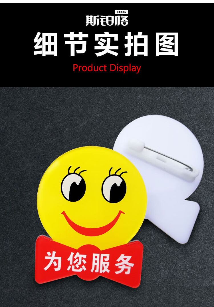 > 斯铂格 亚克力笑脸胸牌 卡通可爱圆形工牌 微笑徽章胸牌 员工工号牌 笑脸 BGT-178