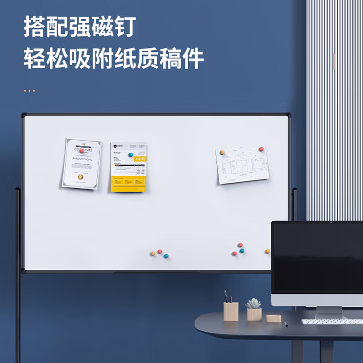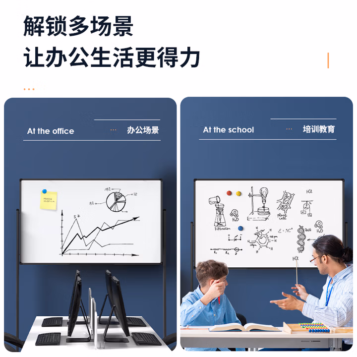 > 得力150*90cmH型支架式白板写字板 书写移动升降教学儿童画板黑板办公会议黑板家用33726【销冠系列】