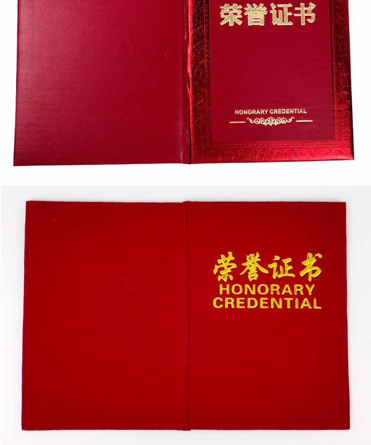 安赛瑞 荣誉证书(5本装)横款绒面荣誉证书奖状附赠内芯 红绒烫金12K160x220mm 26435