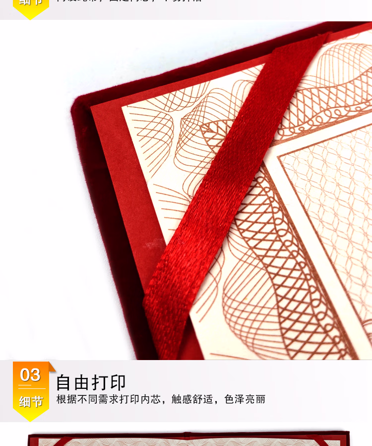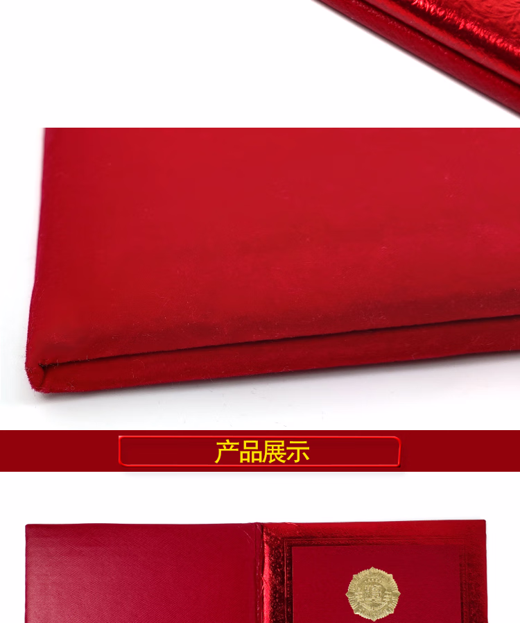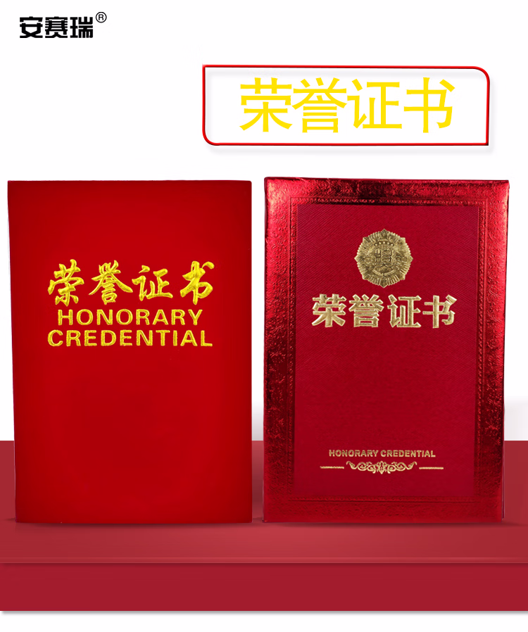 > 安赛瑞 荣誉证书(5本装)横款绒面荣誉证书奖状附赠内芯 红绒烫金12K160x220mm 26435