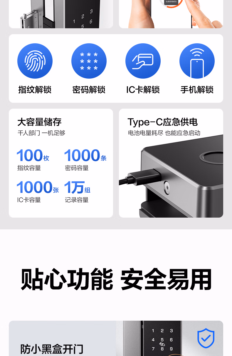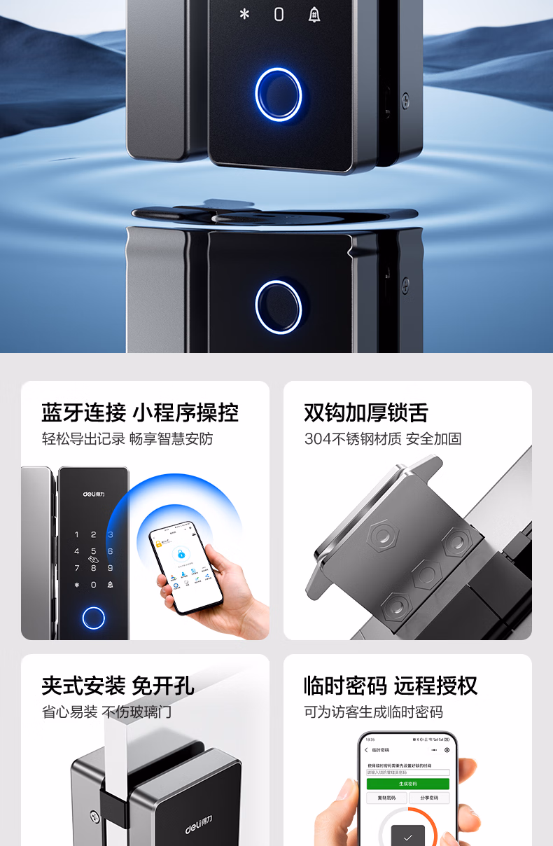 > 得力玻璃门指纹锁智能电子密码锁办公室玻璃门锁免开孔布线蓝牙小程序管理 AL102