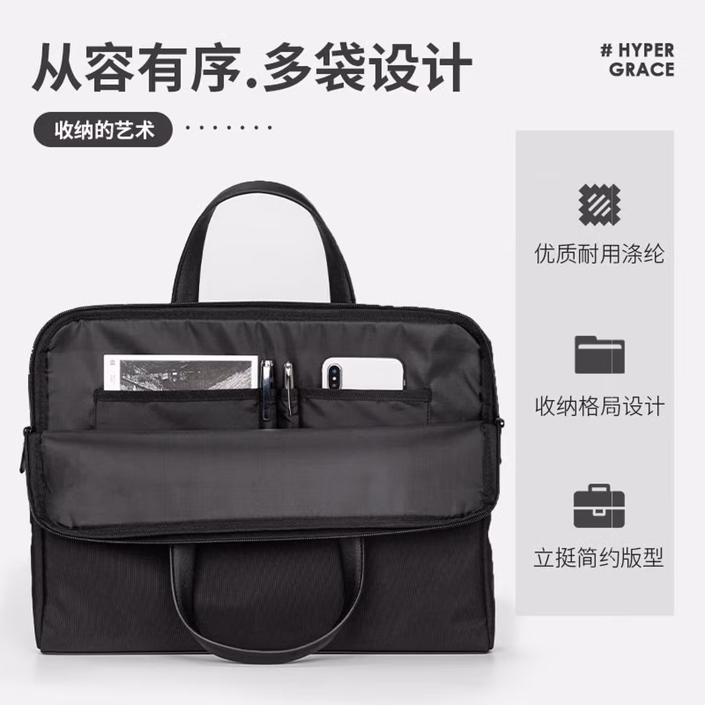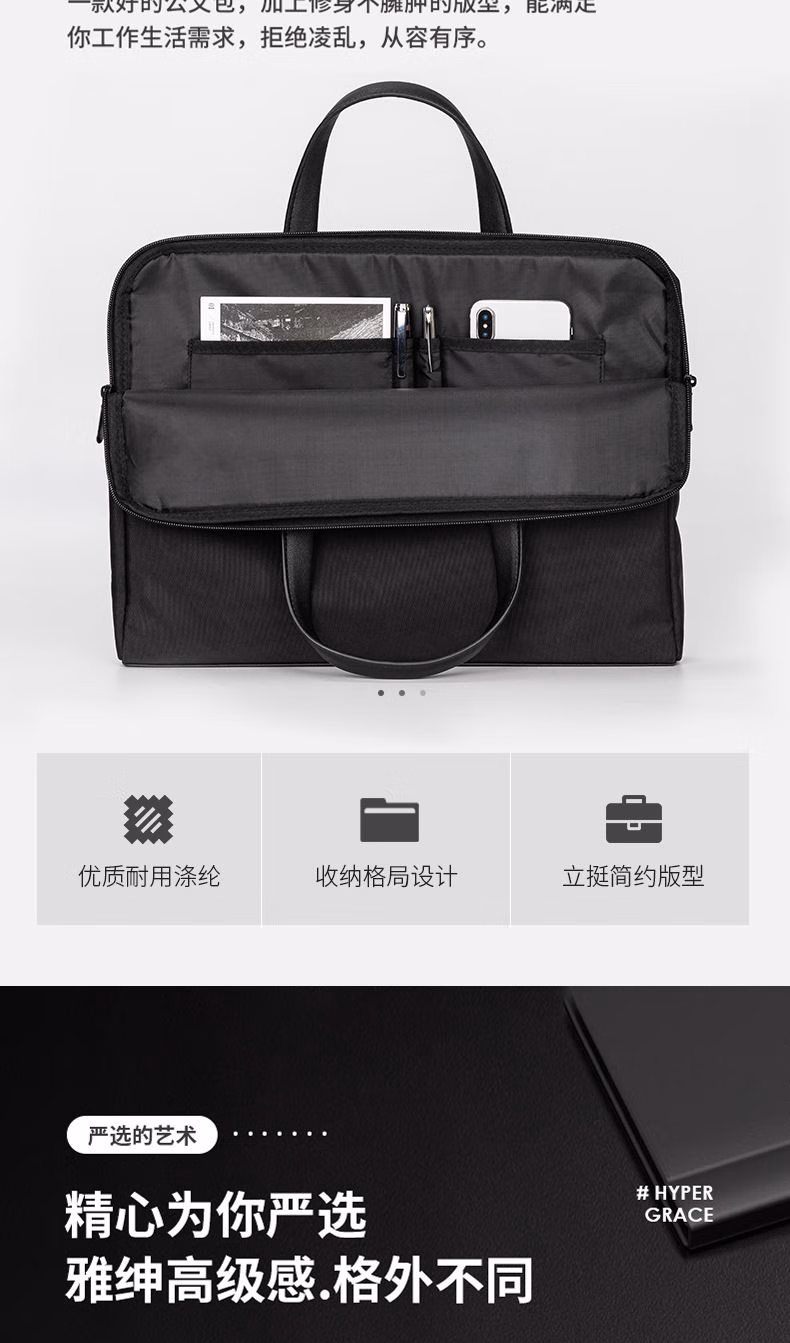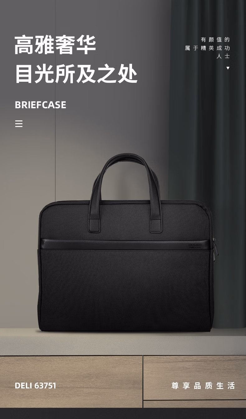> 得力(deli)事务包公文包商务男女职业文件袋/涤纶手提包/文件包/资料袋 63751黑色