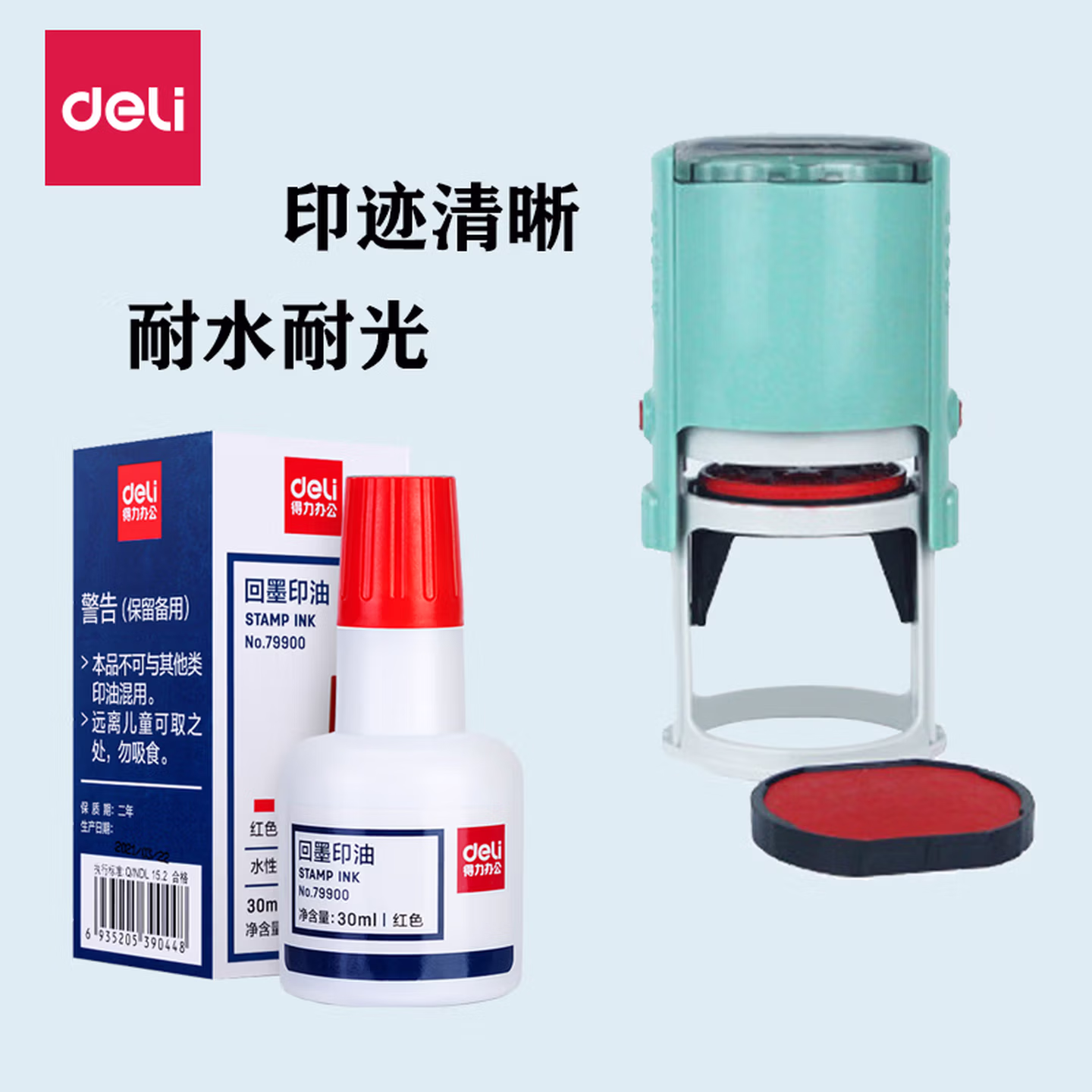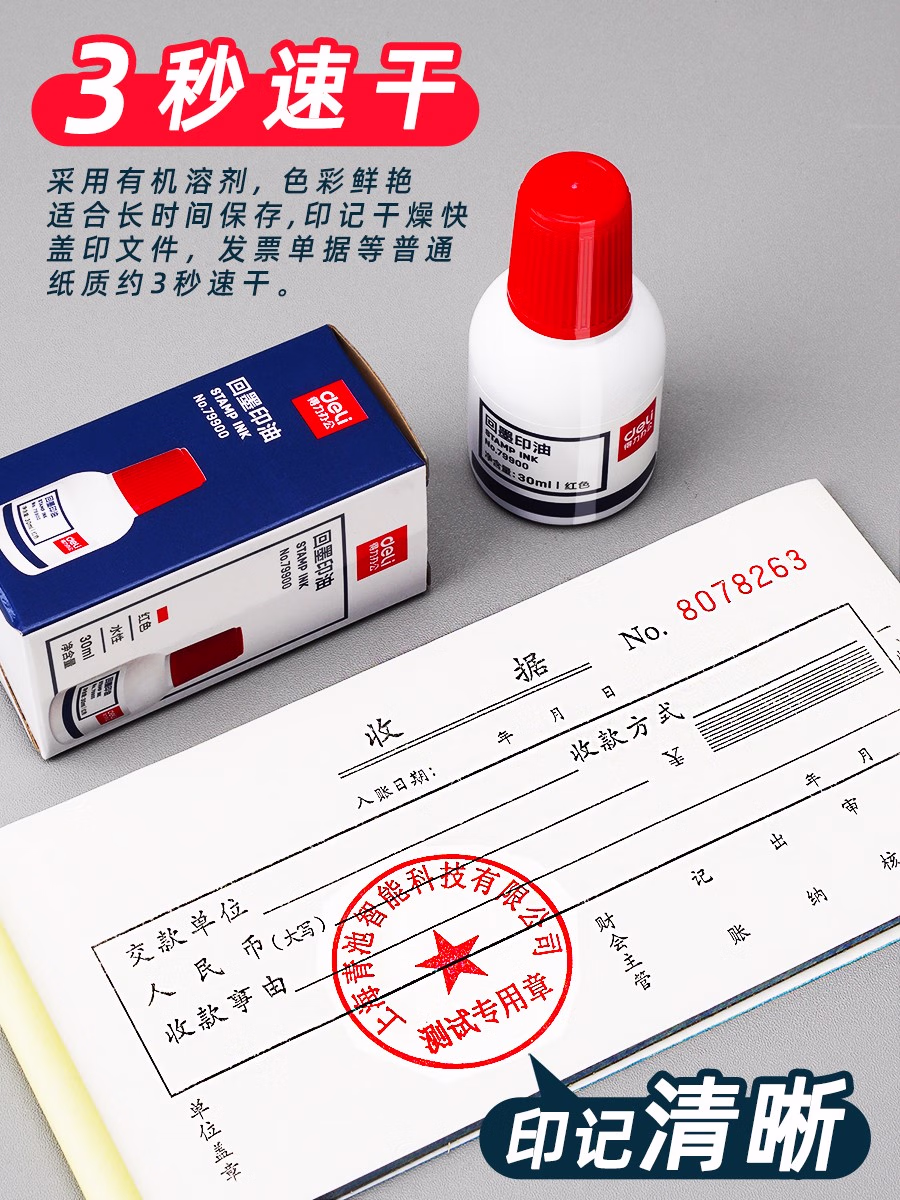 > 得力回墨印油【水性】速干翻转回墨印章专用印油墨水红蓝黑色会计合同发票办公章专用印台填充印油 回墨印油-红色1瓶30毫升[3秒速干
