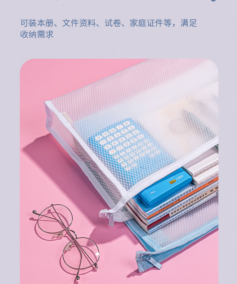 > 得力(deli)A4加厚EVA透明拉链袋 耐用小学生科目分类文件袋收纳袋 72466颜色随机
