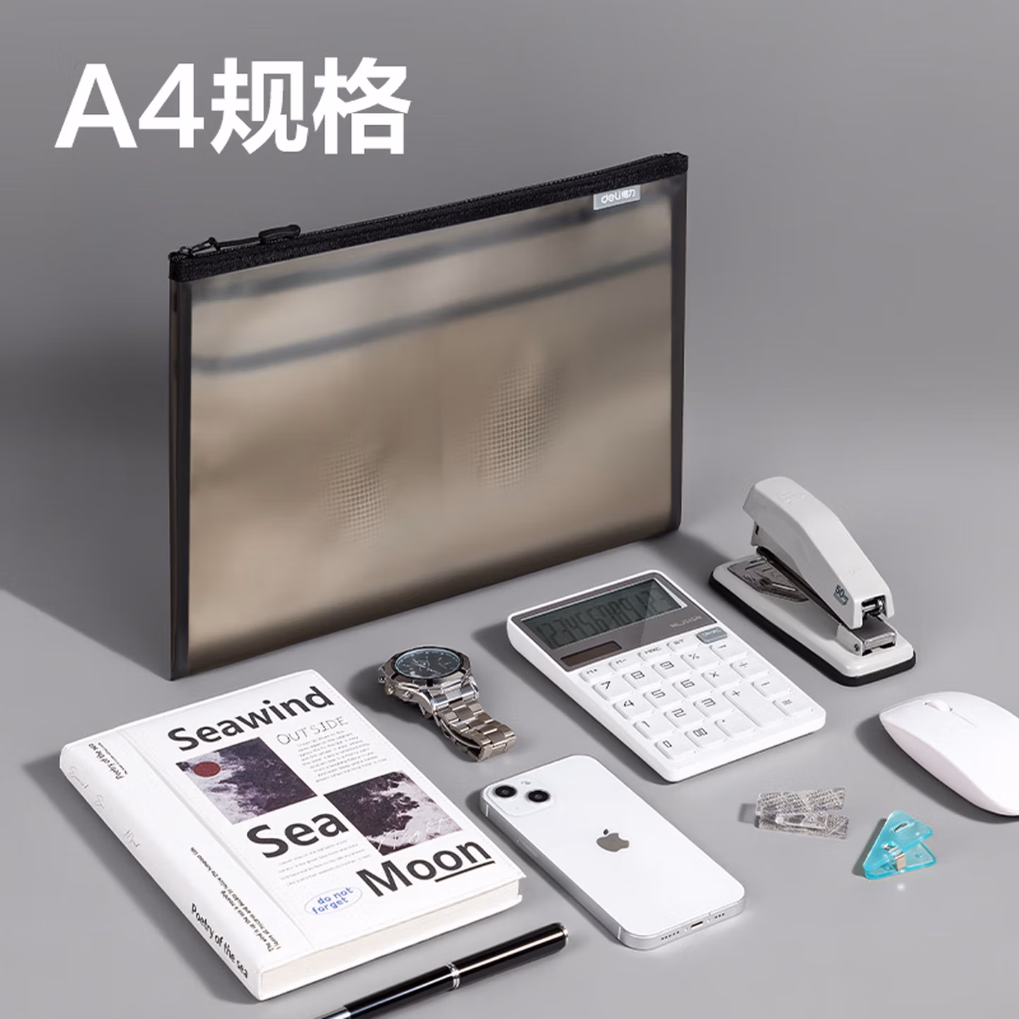 > 得力(deli)TPU拉链袋 资料袋小学生科目分类文件袋拉链袋 试卷文件凭证收纳 黑色64867