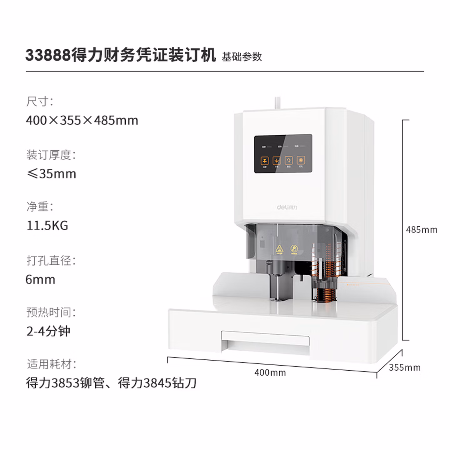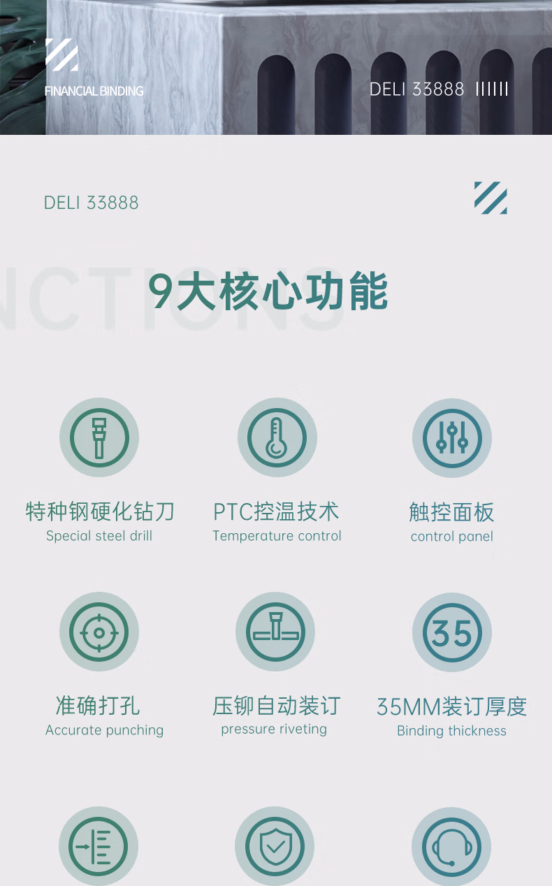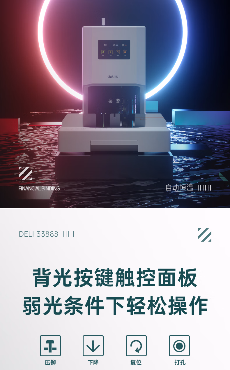 > 得力会计凭证自动装订机财务装订机电动打孔装订机档案铆管热熔装订机文件打孔触控面板好评率99%33888