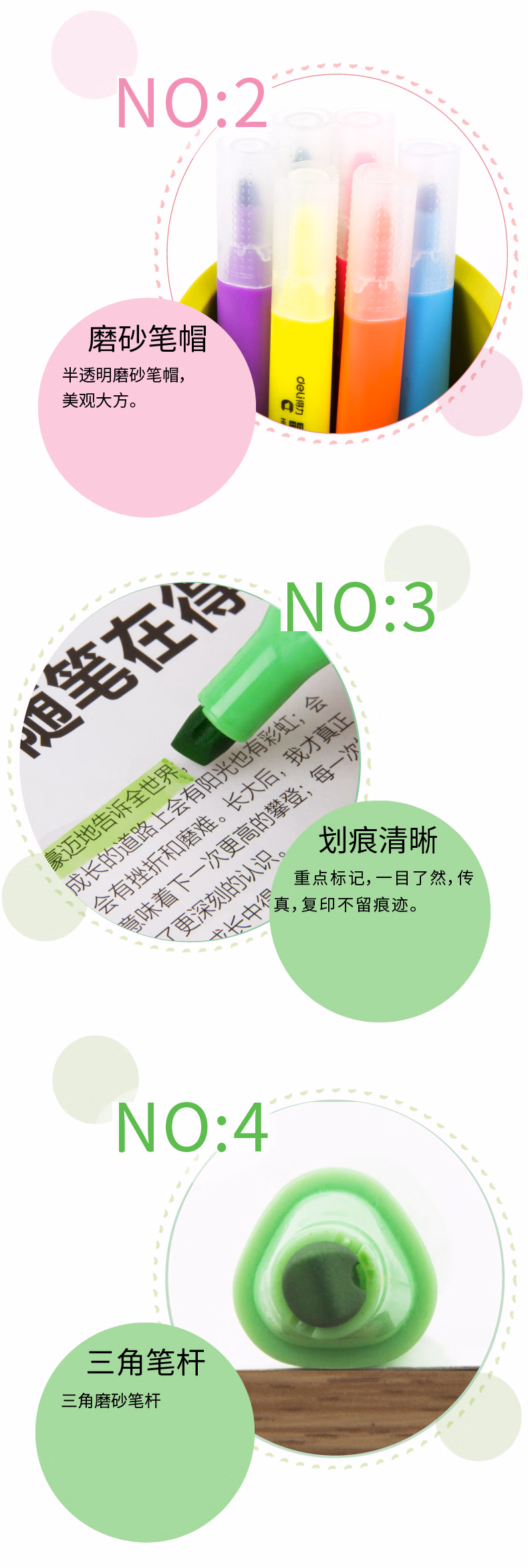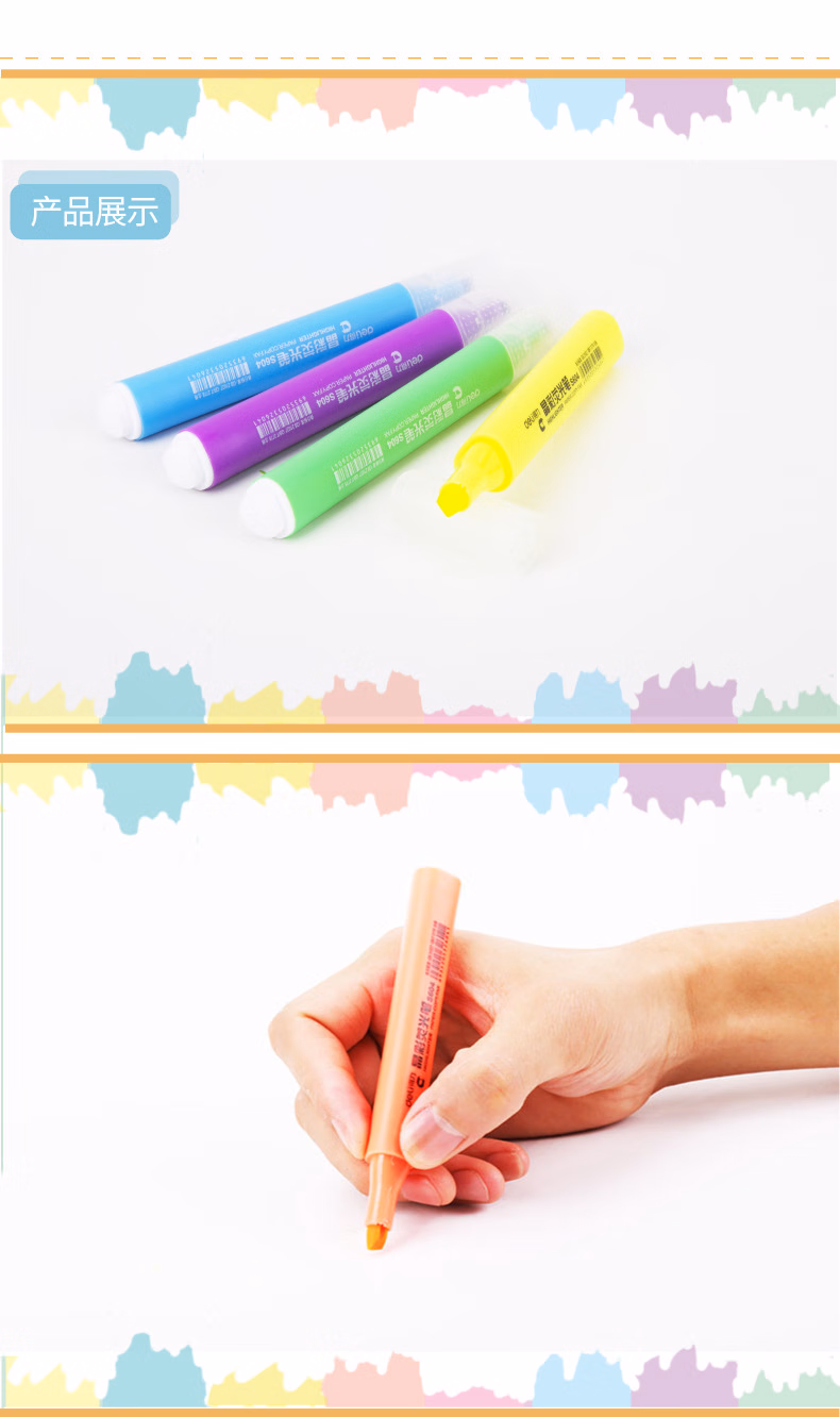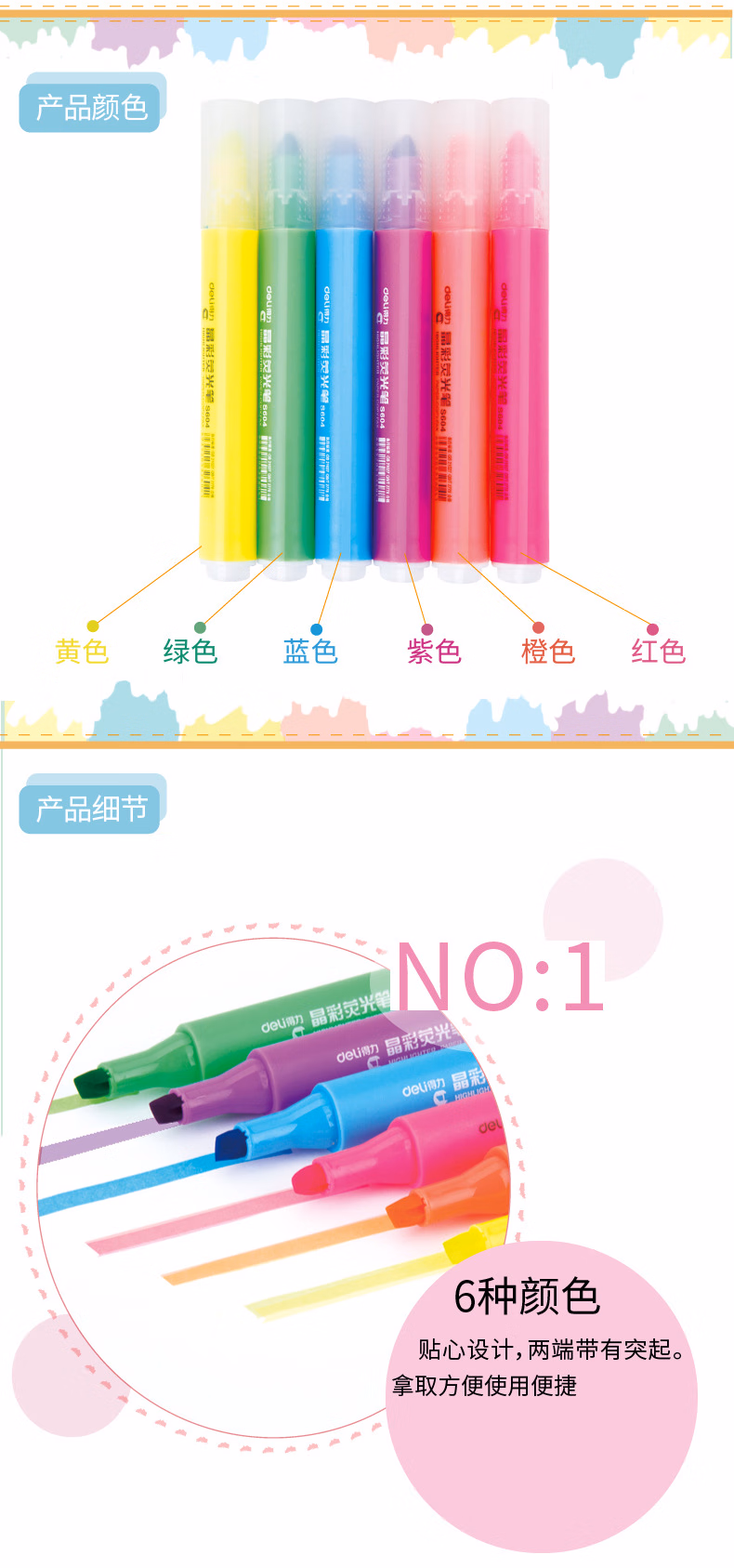 > 得力(deli)6色荧光笔考试复习重点标记笔 手帐可用水性记号笔6支/盒33111