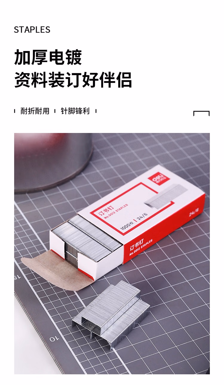 > 得力(deli) 高强度订书钉 12#订书针 1000枚/盒 24/6 办公用品 0012 10000枚钉省力型26/6 25页丨10盒