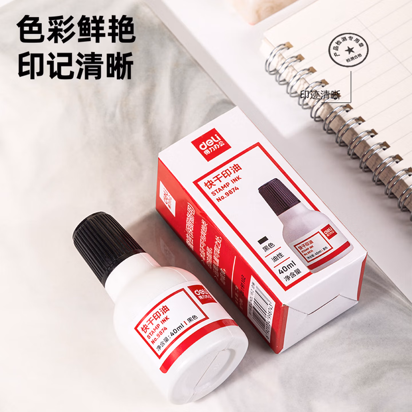 > 得力(deli)40ml财务印章快干清洁印油印泥 财务用品 办公用品 黑色9874