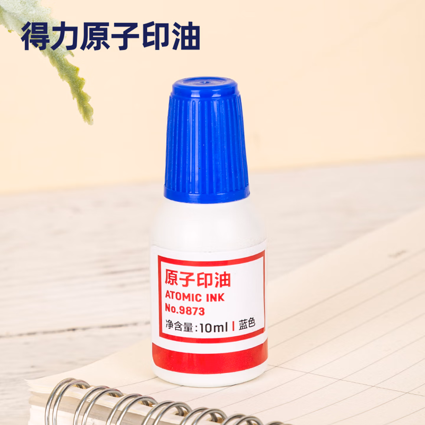 > 得力(deli)10ml财务印章原子印油 蓝原子印章油 办公用品 9873