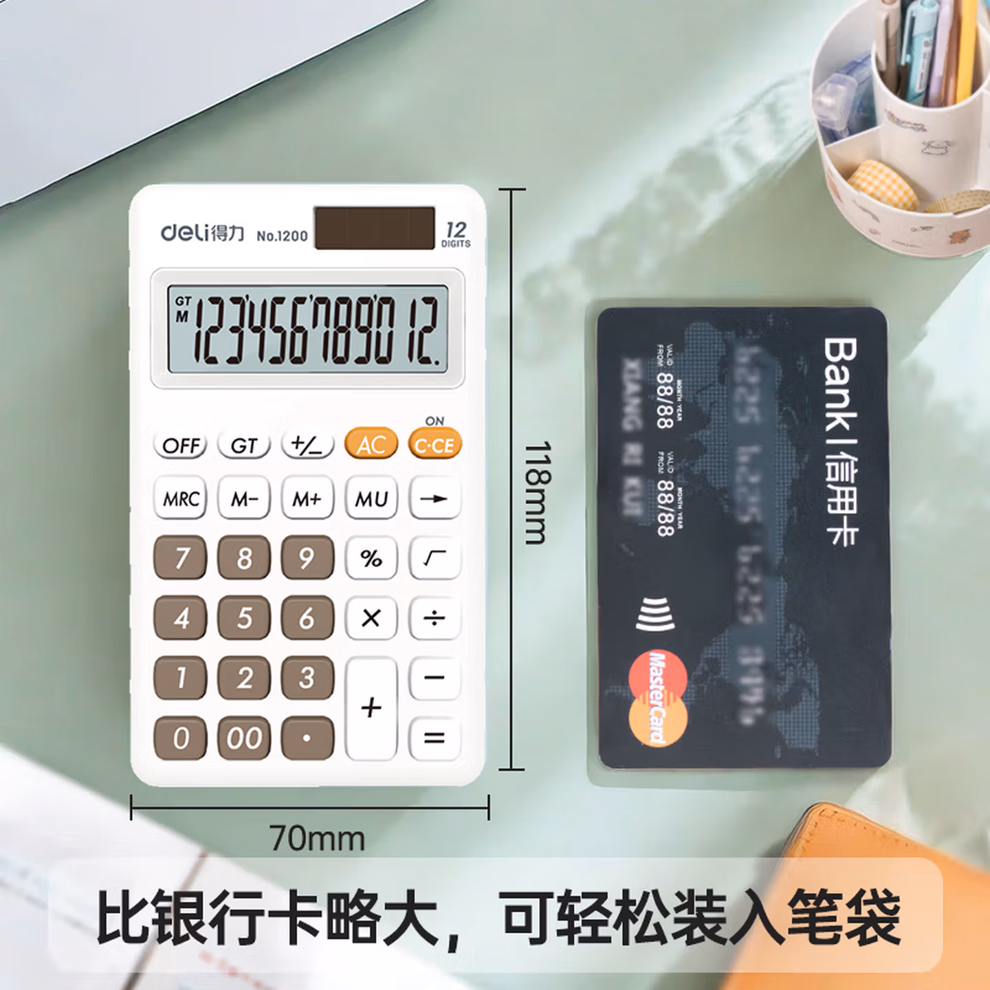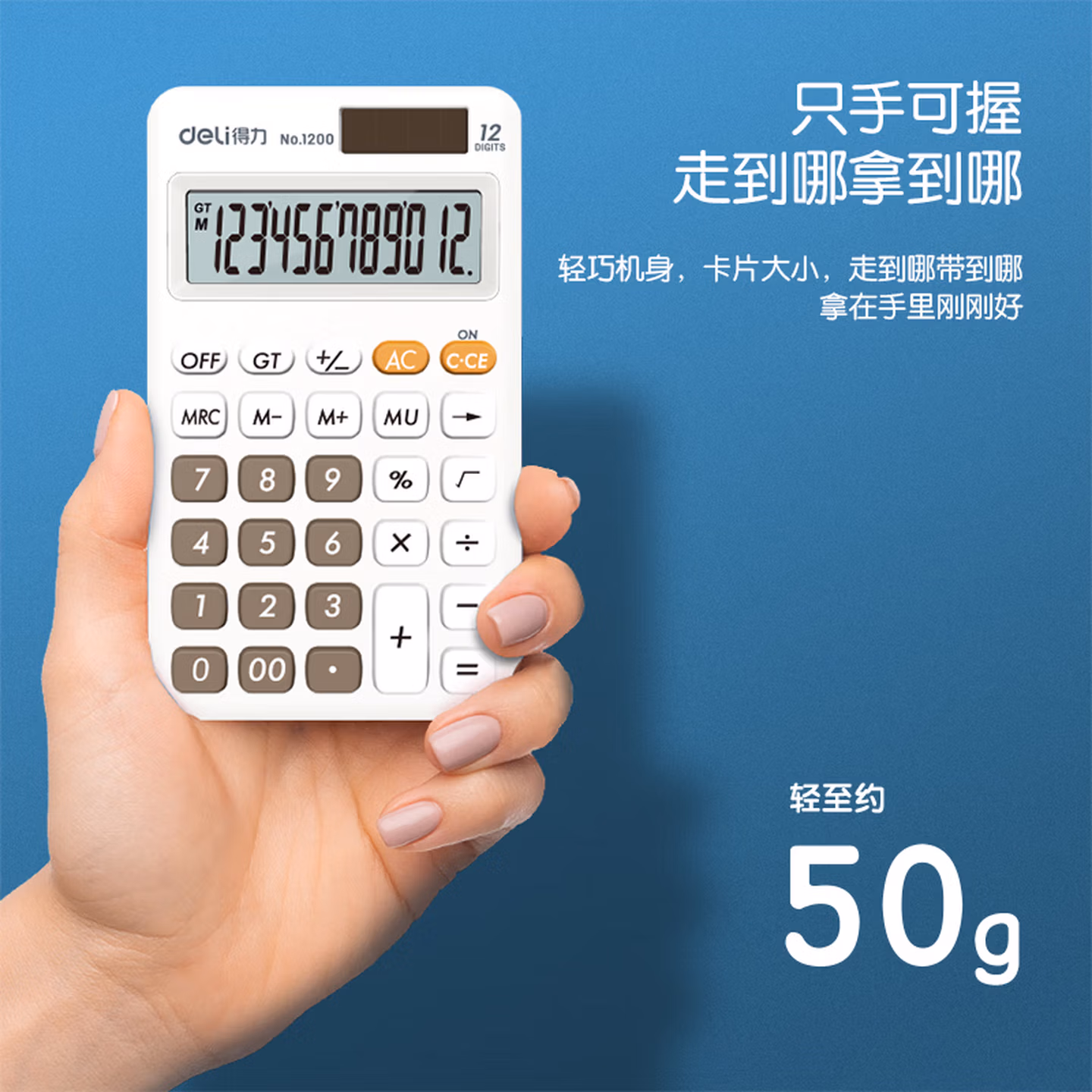 > 得力(deli)双电源便携款时尚计算器 轻薄机身硅胶按键 学生可爱桌面计算机 办公用品 白色1200