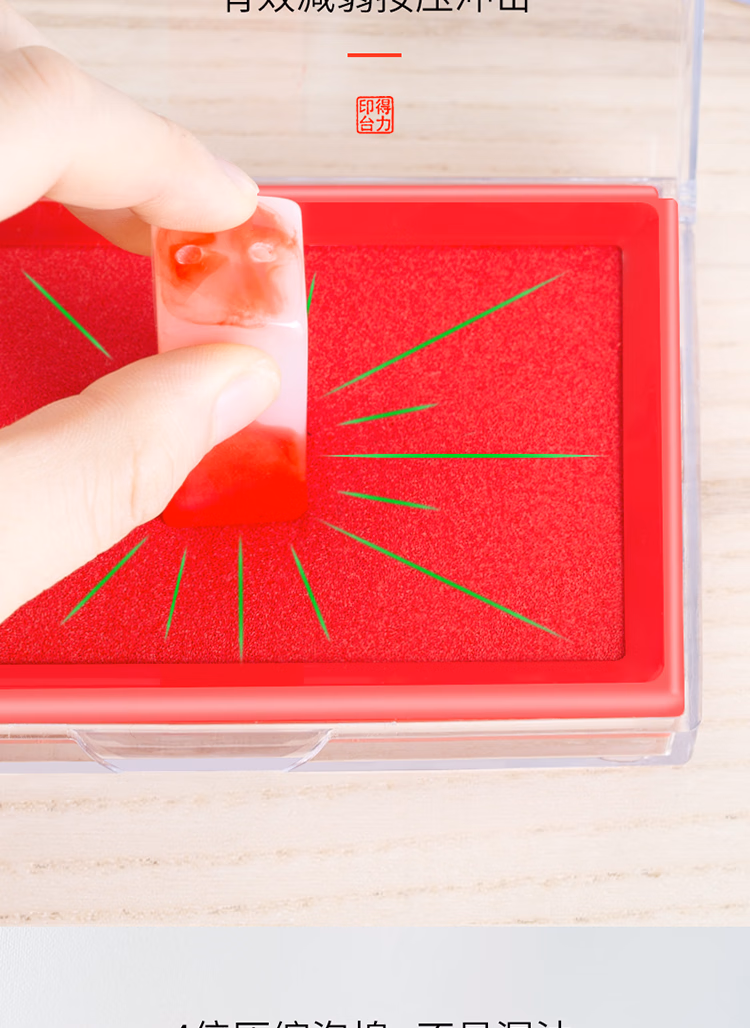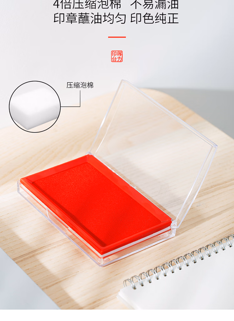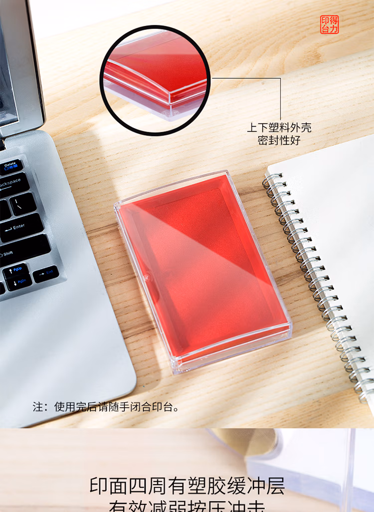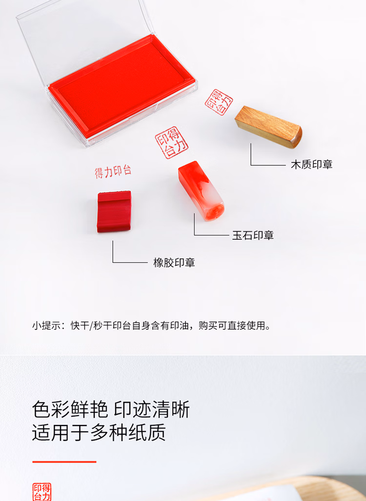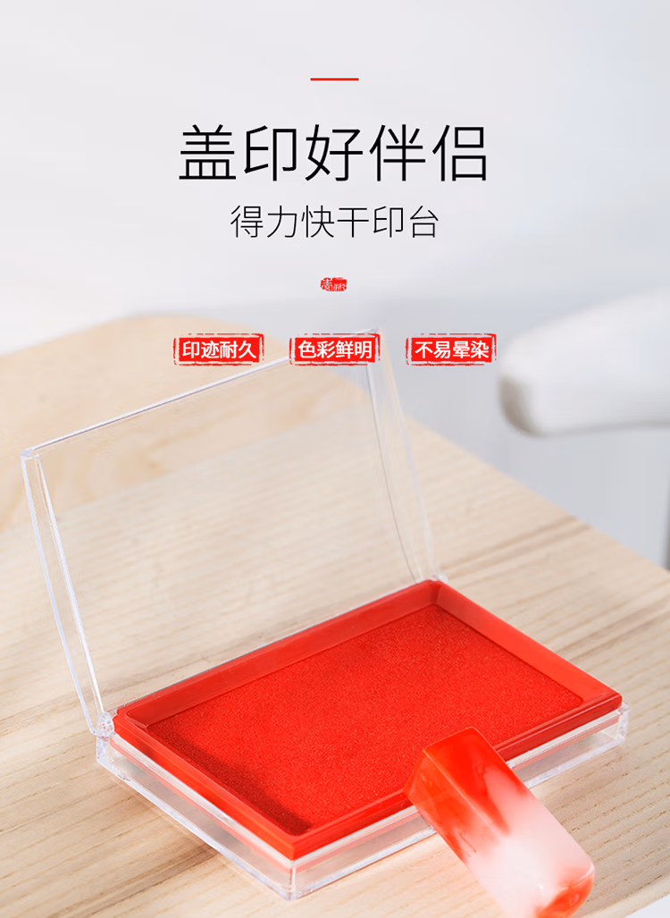 > 得力(deli)137*88mm透明外壳方形快干印台印泥 办公用品 红色9864