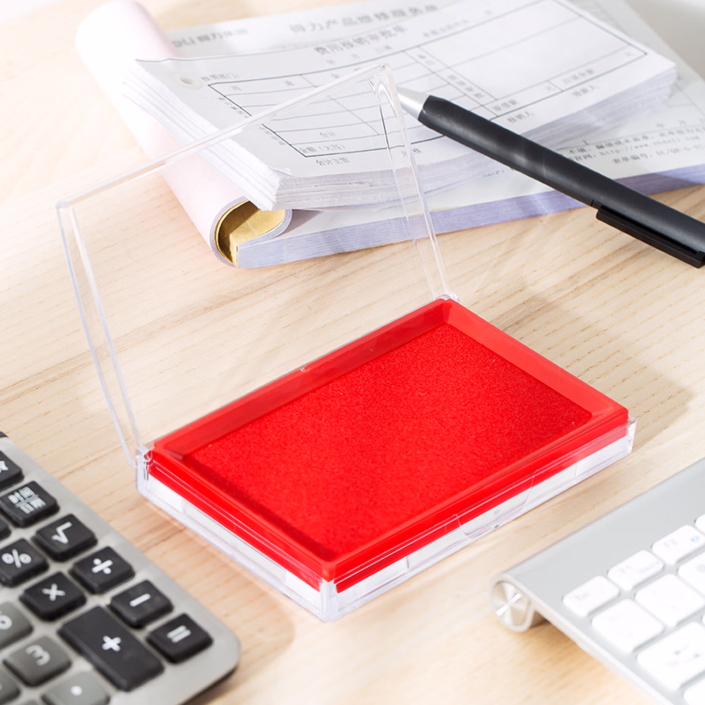 得力(deli)137*88mm透明外壳方形快干印台印泥 办公用品 红色9864