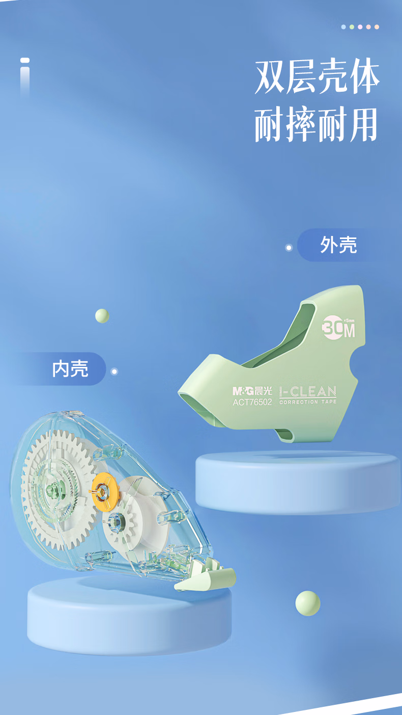 > 晨光(M&G)文具150M大容量双壳加厚耐摔修正带 30M*5MM学生涂改带隐形改正带 莫兰迪5支装 学习用品开学文具