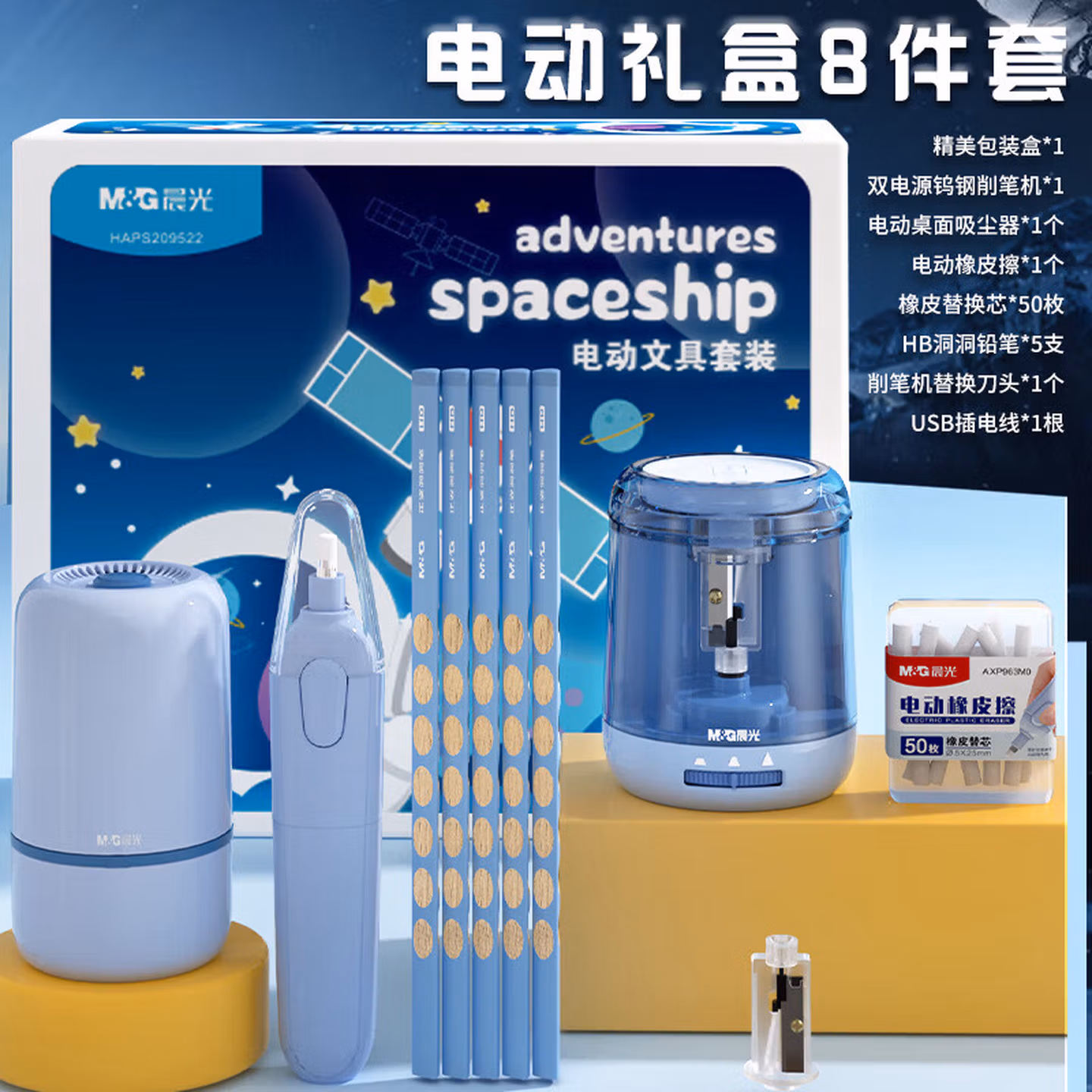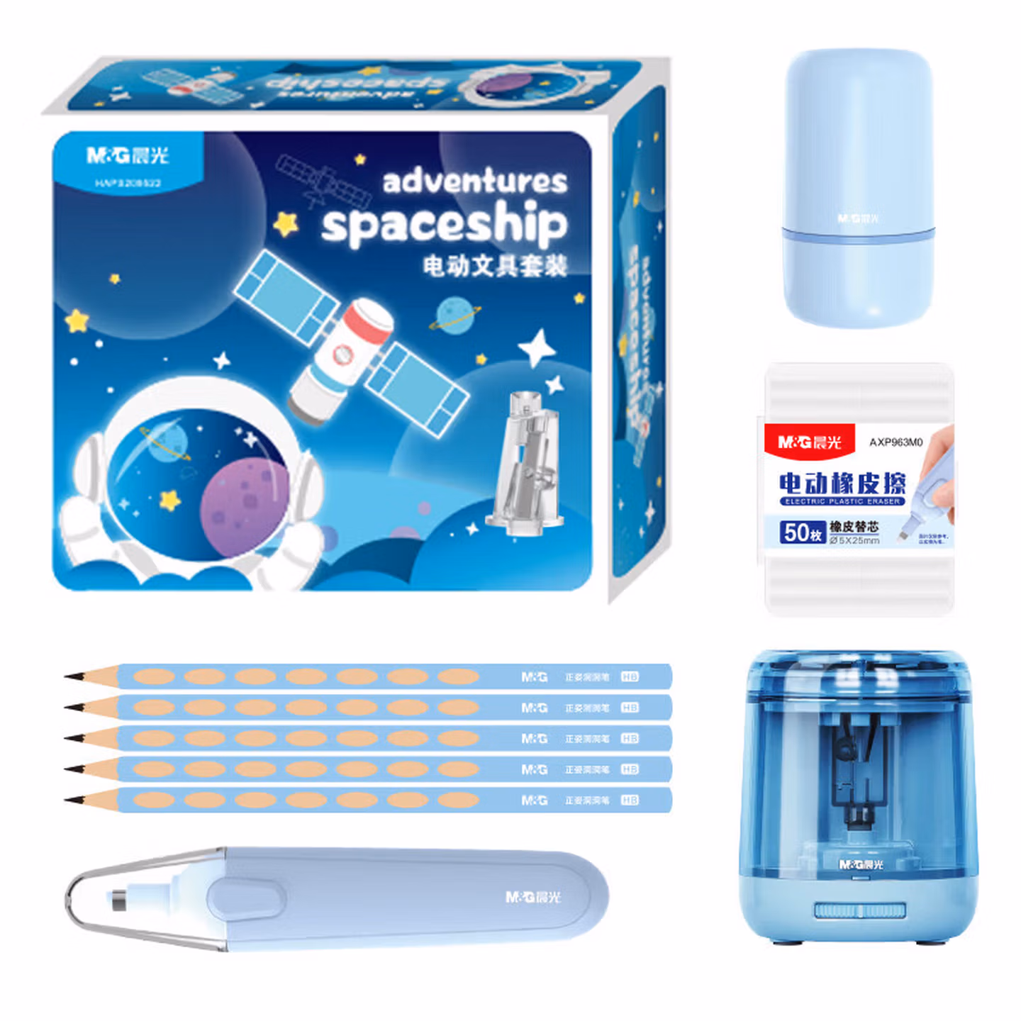 > 晨光(M&G)开学季套装礼盒历史喵系列IP联名款大礼包3-9年级学生高颜值实用可爱风入学必备品 【电动套装】插电/电池 宇航员蓝