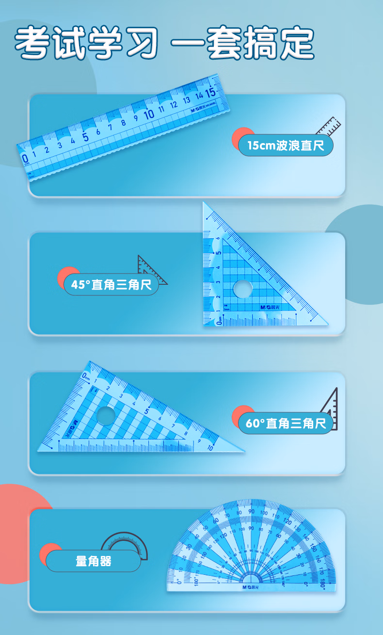 > 晨光(M&G)文具15cm零起端学生套尺 超耐用 防刮花 不易断 双色波浪刻度 考试绘图制图 ARL960BL