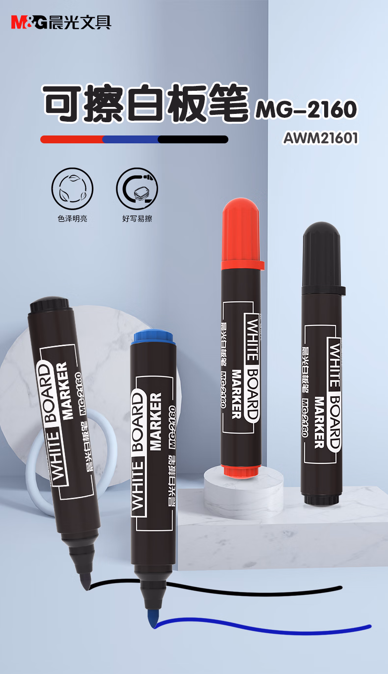 > 晨光(M&G)文具可擦白板笔 单头办公会议笔 易擦大容量白板笔 红色12支/盒MG2160