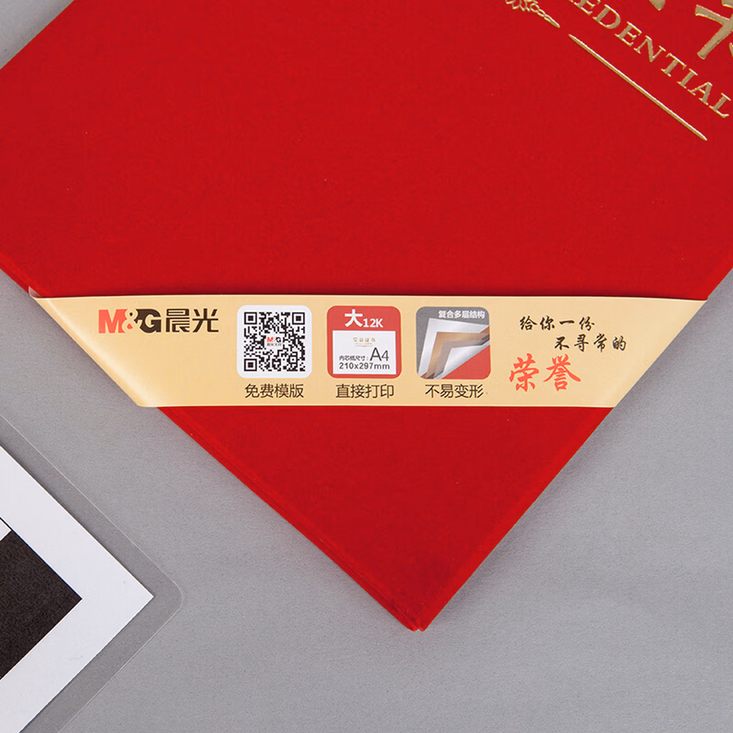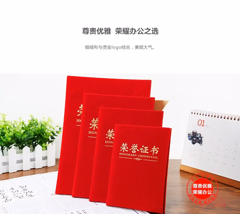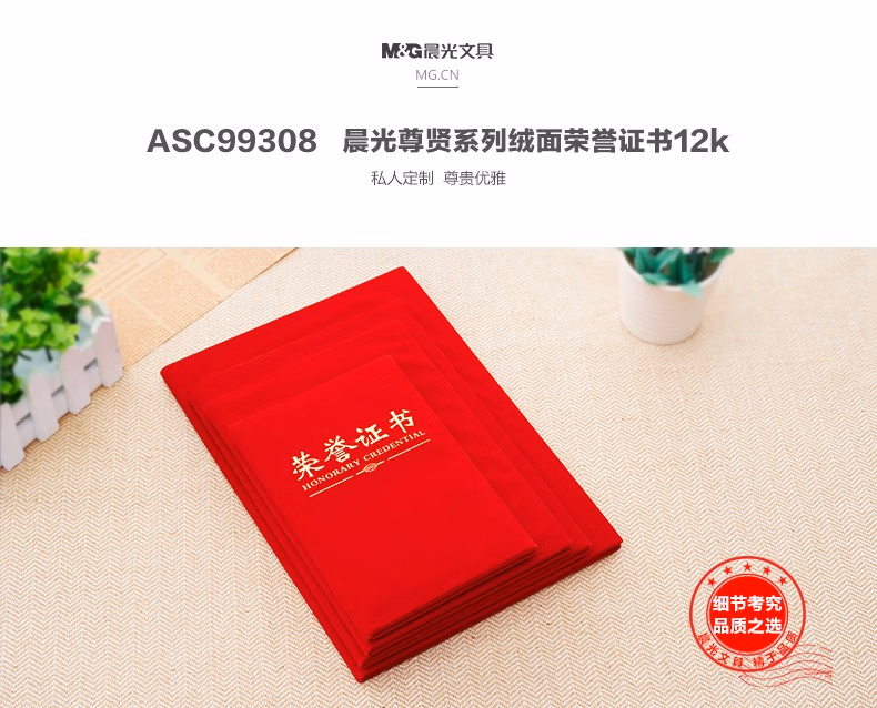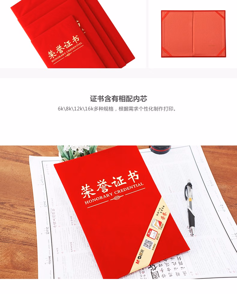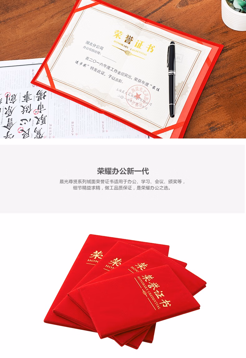 晨光(M&G) 文具8K红色荣誉证书258180mm烫金竖式证书尊贤系列学校企业褒奖证书 8K绒面(ASC99307)