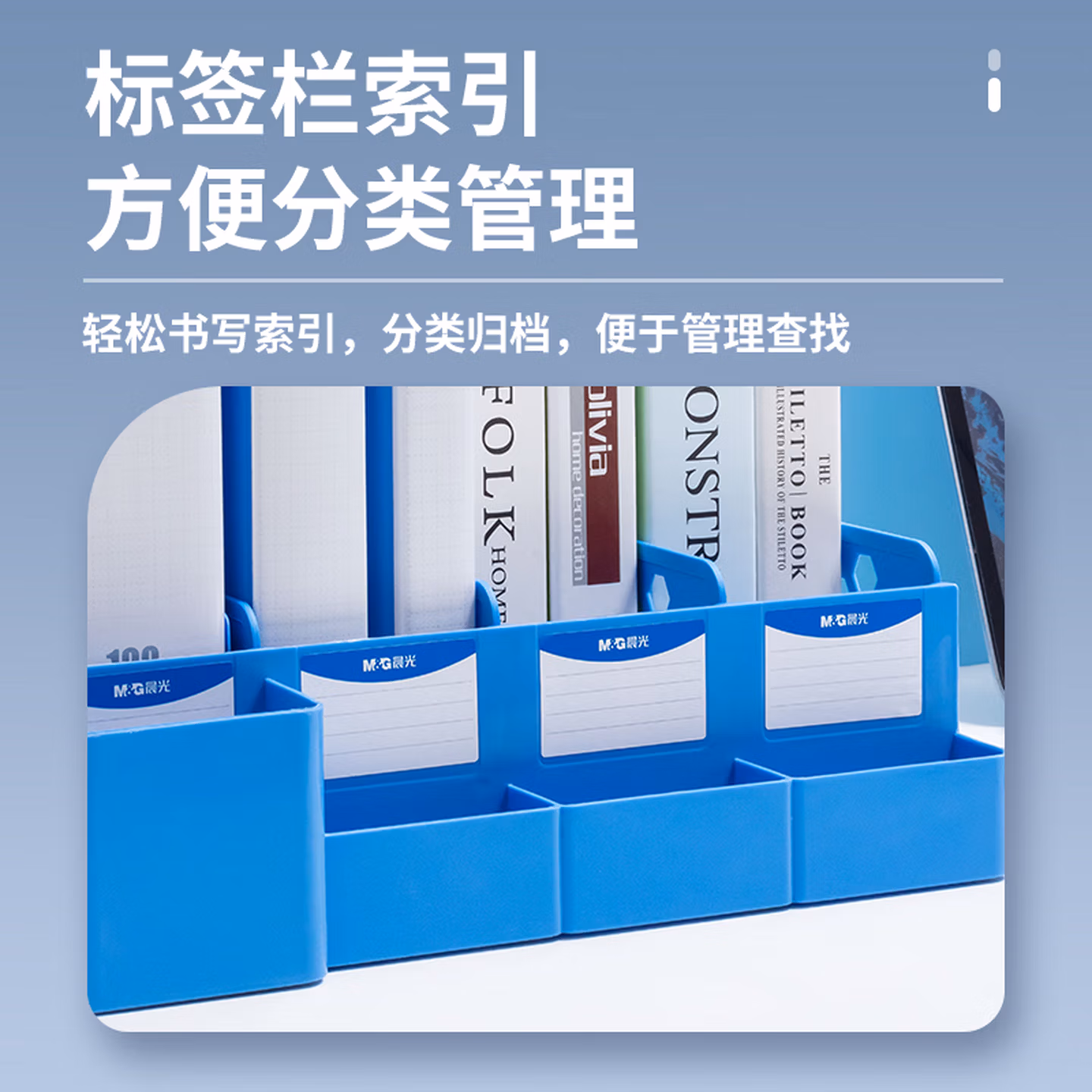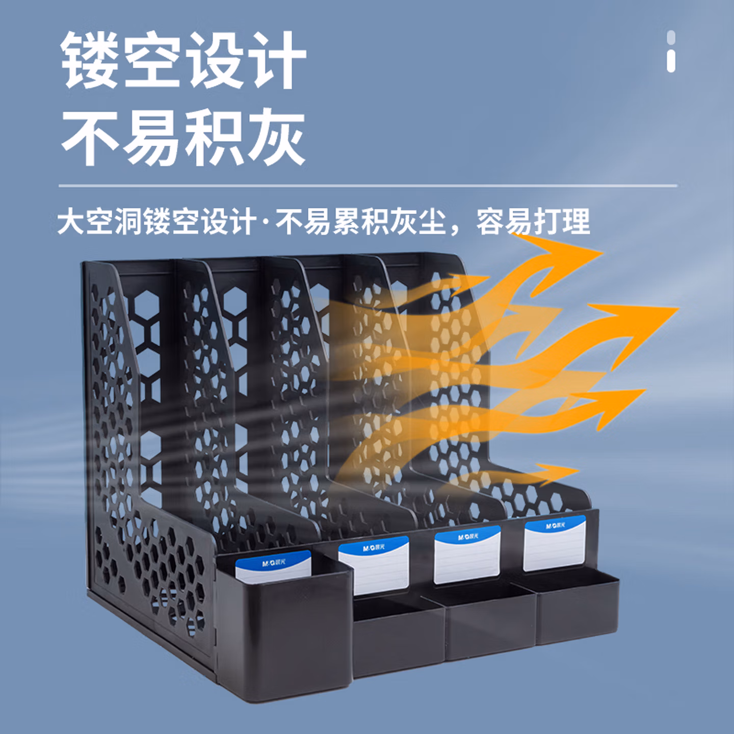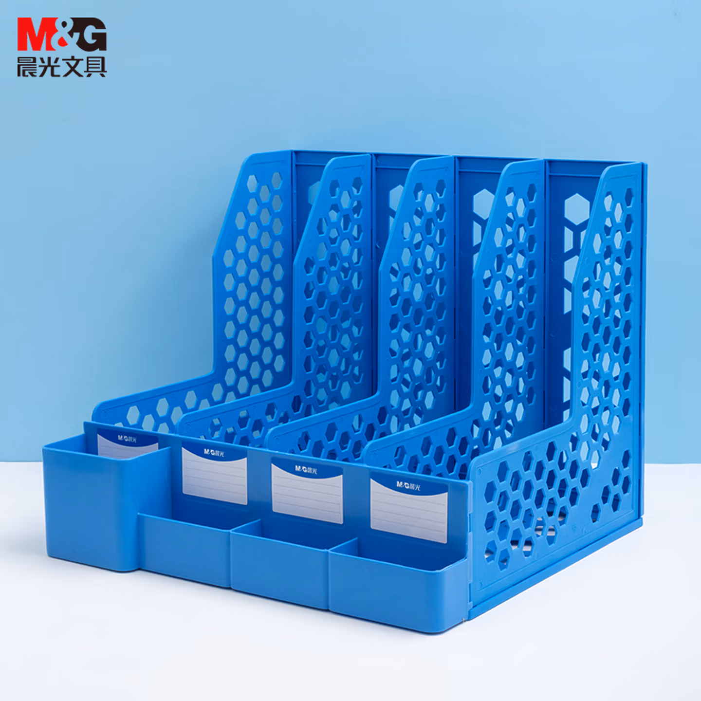 > 晨光(M&G)文具三联带笔筒收纳桌面文件框 多功能镂空文件架/文件栏/文件框/资料筐 蓝色单个装ADM929R9B