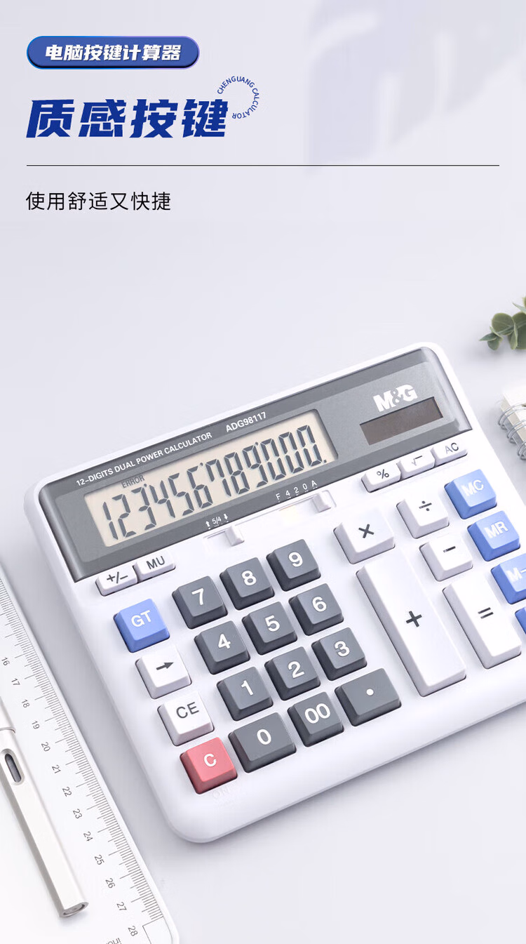 > 晨光(M&G)文具电脑按键计算器 太阳能双电源桌面计算机 12位大屏幕计算机 单个装ADG98117