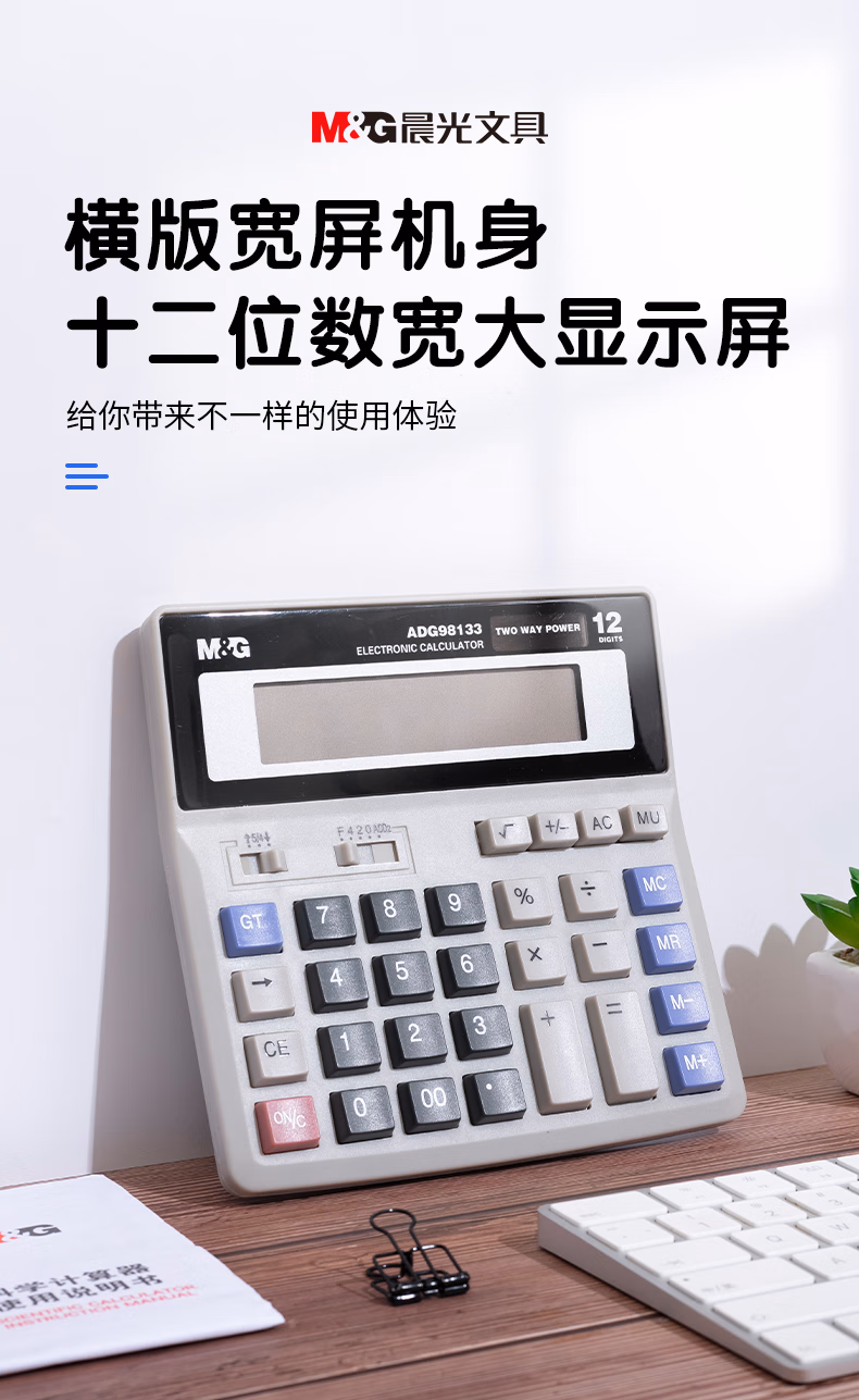 晨光(M&G)文具双电源电脑按键计算器 12位大屏桌面计算机 财务人员适用 办公用品 单个装ADG98133
